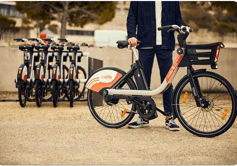 Une flotte de vélos électriques. Service disponible via l’application mobile ou avec des abonnements achetés aux bornes.