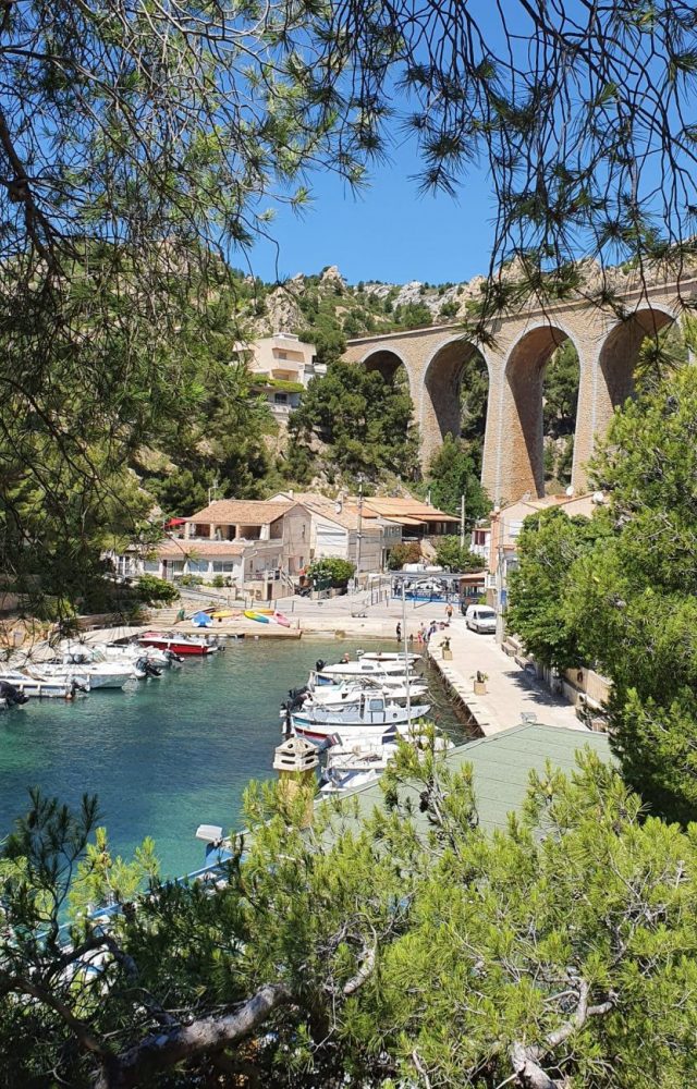 Le grand Méjean, où l’on accède par un petit sentier du bout du port, possède une très jolie crique. L’imposant viaduc en arrière-plan le domine. Ici le massif de la Nerthe se termine de façon abrupte : les voies desservant le port et les maisons environnantes sont très pentues !