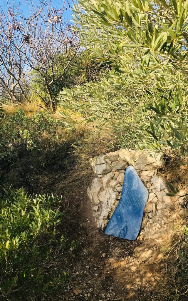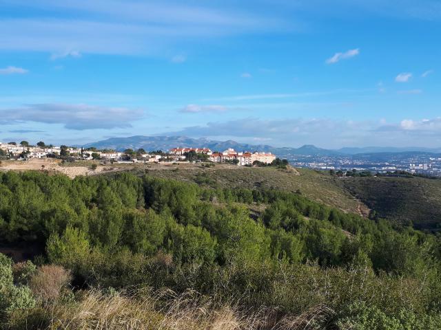 On commence par longer l’avenue Louis Blériot qui se prolonge par le chemin du four de Buze. Cette mise en jambe longe et traverse des méandres du canal de Marseille et permet de découvrir d’anciennes grandes propriétés. Aujourd’hui, au milieu des villas protégées de hauts murs clôturés, certains néo-agriculteurs reprennent possession de ses espaces, pour y implanter une agriculture urbaine et locale, comme par exemple Terre de Mars installé au bout de l’impasse du four de Buze. C’est précisément à cet endroit qu’on quitte la route goudronnée pour s’engager sur une piste DFCI, facile à identifier grâce aux deux colonnes d’une ancienne campagne “Notre Dame”.