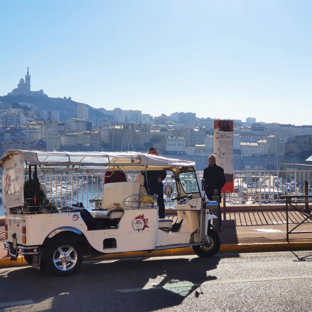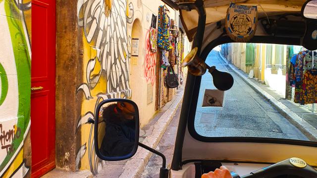 I decide to rediscover Marseille but this time in a more original way, by tuk tuk! Nicolas will be our guide and driver, a couple will join us a few minutes later to share this tour. After a quick introduction, Nicolas explains what our journey is going to be and invites us to board his “pitchoune”( affectionate expression from Marseille meaning little girl “fillette”).