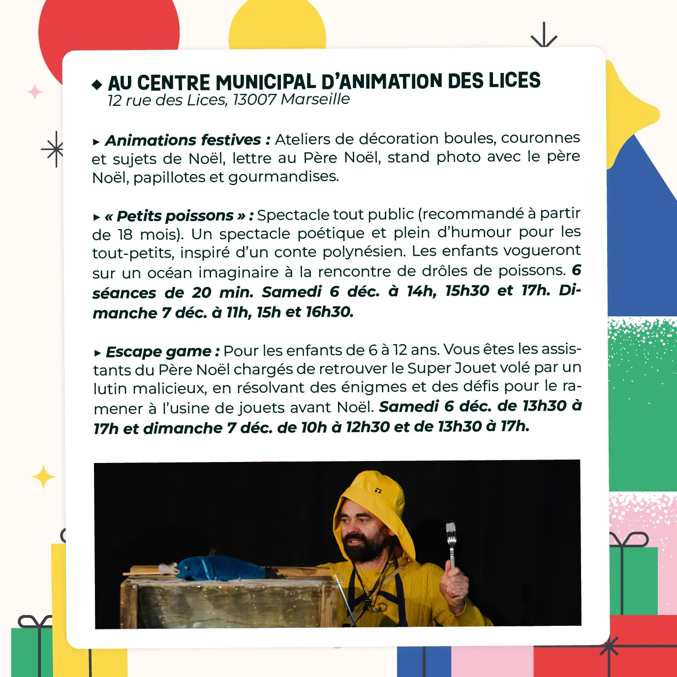 Centre municipal d’animations des Lices, 12 rue des Lices, Mairie des 1 et et 7e arrondissements 61 la Canebière, 13001 Marseille 1er