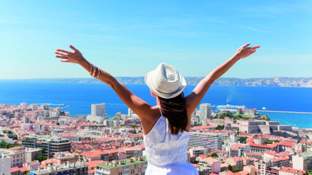 Salut Marseille! Girl welcomes the French city of Marseille.