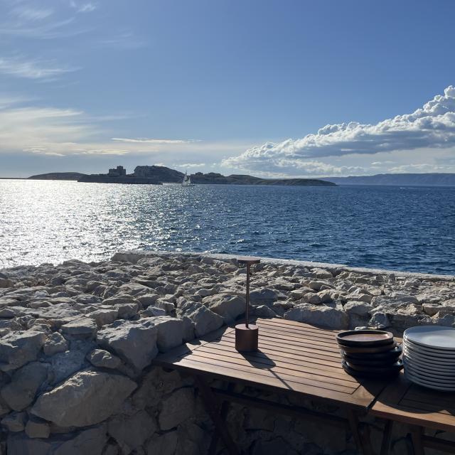 In 1680, Louis XIV had a fort built on the island, “Fort de Tourville”, to protect the city from possible maritime attacks from the south of Marseille. The island remained a military possession for a long time, and it wasn’t until the beginning of the 20th century, around 1915, that the army parted with it. The island was then bought by André Laval, a wealthy industrialist from Marseilles, who gave it to his wife, Liane Degaby, a music-hall performer. The island became a festive place where all the bourgeoisie of Marseilles came to party. This wealthy industrialist owned some real works of art, which attracted covetousness, and it was around 1921 that thieves broke into the property and looted the island. The despondent owners left. For almost 40 years, the island was abandoned. It was then bought up by a number of people, all of whom had eccentric plans for the island, but none of them ever saw the light of day. In 1990, L’île Degaby was bought by jeweler Pascal Morabito, who renovated the island and turned it into his artists’ residence. He also hosted a number of soirées there. In 2001, the island was once again bought by property developers and then sold. Today, Île Degaby belongs to a Belgian group and is managed by the “Société d’exploitation de l’île Degaby”. The group has invested heavily in refurbishing the fortress (kitchen, gardens, roof terrace, reception room, etc.), hosting private events, seminars and parties. In 2023, it was possible to dine there for one-off events and enjoy a unique experience.