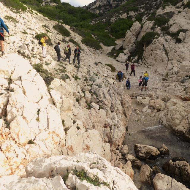 From Callelongue, the Mounine cove is located halfway between the Semaphore pass and the Marseilleveyre cove.