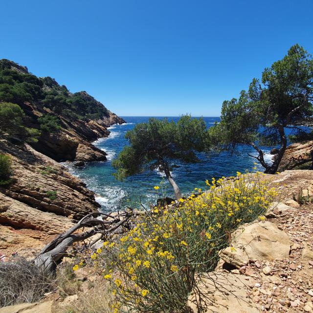 It is a very small cove with little access for bathing: a narrow sandy beach and another of large pebbles… But if you venture out on the surrounding paths, you can reach some rocks from which you can dive (not suitable for young children).