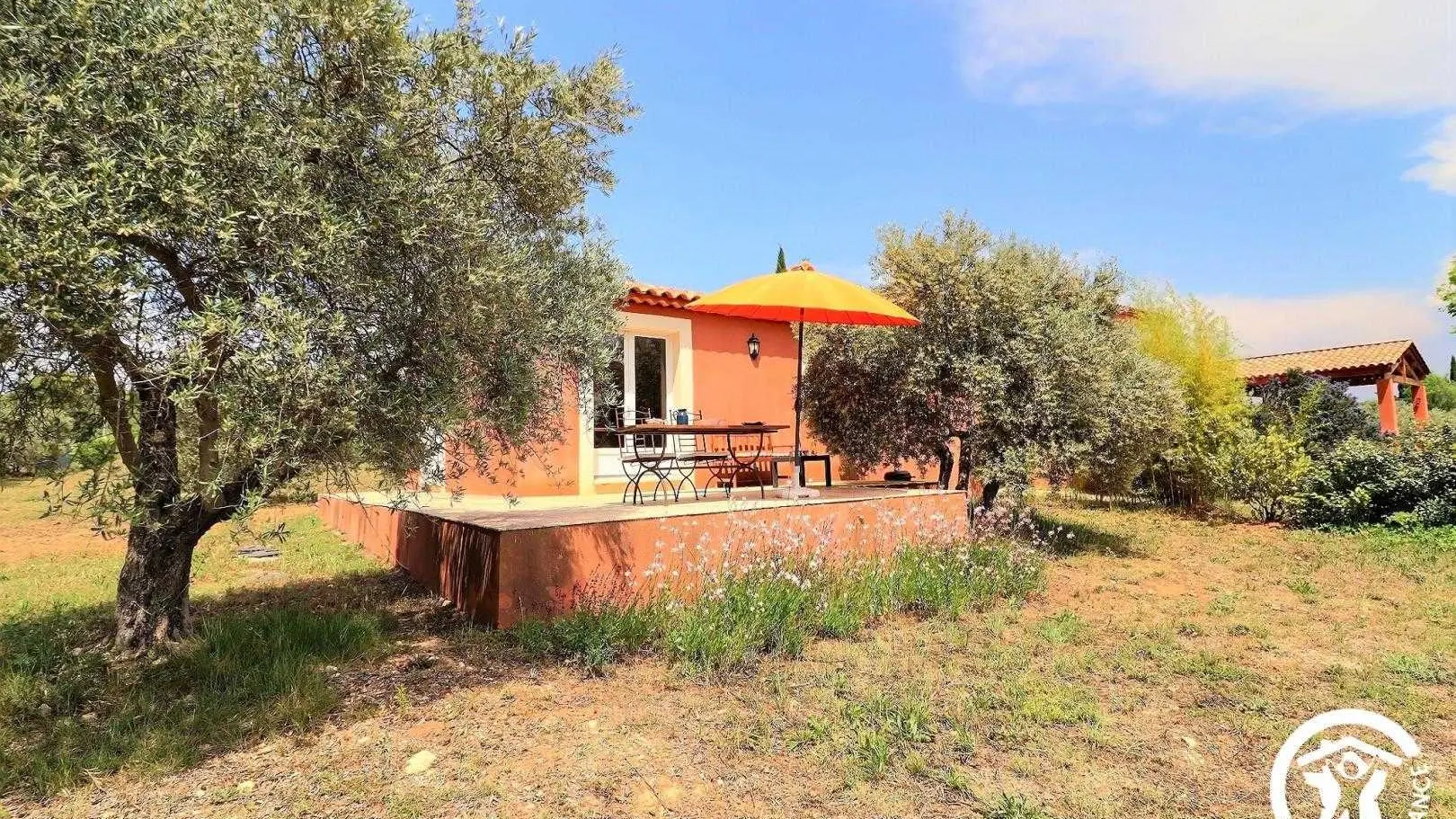 This cottage lives up to its name! It is actually located opposite a field of olive trees. Built in 2017, it is not adjoining the owners' house but is architecturally linked to it. It has a private terrace overlooking the olive trees. The gîte, on the raised ground floor of 3 steps, is composed of: