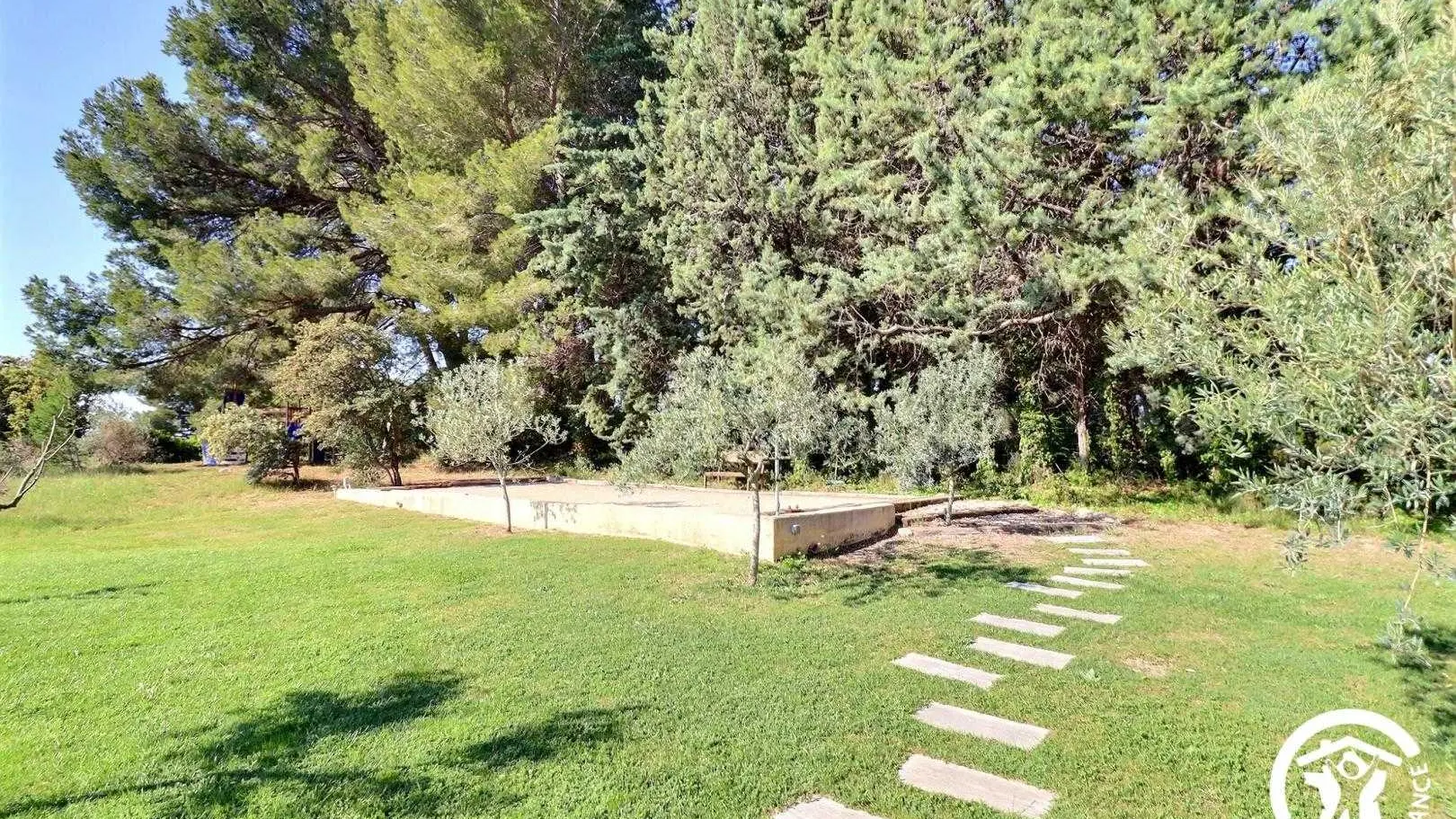 In the heart of the Alpilles, 1.5 km from Maussane les Alpilles, "La Bastide de Luson" is a beautiful farmhouse completely independent on 9000 m² of enclosed land, with fruit trees, flowers and shrubs, pine trees. It has its private secured swimming pool (4 m x 8 m - Depth 1.40 m), a bowling alley, a covered terrace with garden furniture, terrace shaded under a pergola, pool house in front of the pool.