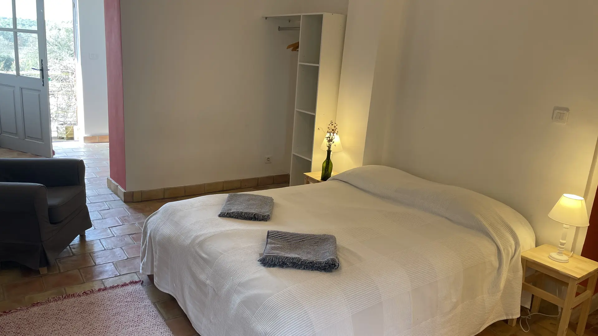 Furnished 35m2 studio above the vineyards. Large living room, equipped kitchenette and shower room.