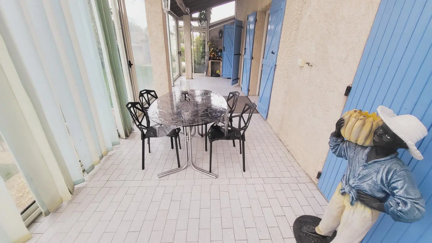 - A large veranda of 27 m² with garden furniture and ping-pong table.