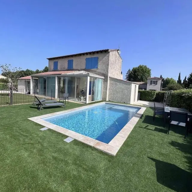 Discover this independent house with its private garden and swimming pool located in Eyragues and which can accommodate 10 people. Ideal for holidays with family or friends!
