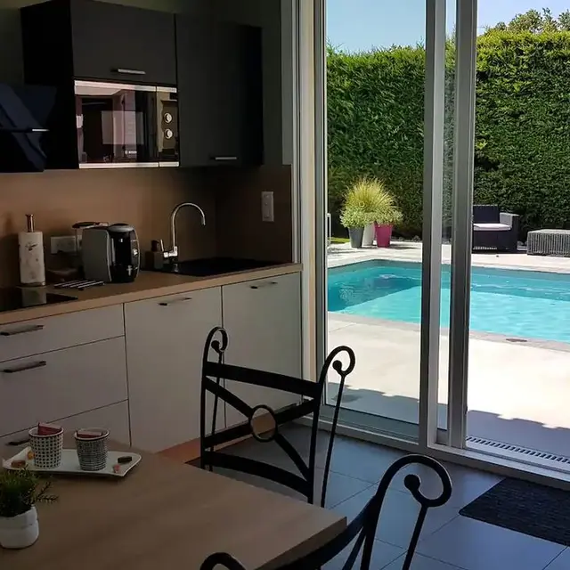 - A second independent toilet with washbasin. There are 2 access steps from the car park to the gîte and 4 steps between the living room and the bedroom. Swimming pool shared with the owners heated 4x7m, depth 1.65m, open from 15/04 to 30/09. Private sheltered terrace/patio with garden furniture, sunbeds and private barbecue. Ping-pong table available. Stay in peace in this all-inclusive cottage: wifi, sheets, towels, end-of-stay cleaning, reversible air conditioning and heating. Parking on the closed property. Removable desk available for telework. Baby equipment available: high chair, cot and bath. Club Monkey Padel at 1.4km.