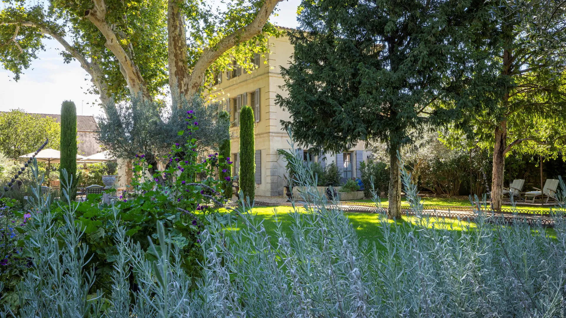 At the foot of the Montagnette and its medieval castle, a bastide house renovated as a charming hotel welcomes visitors to a haven of peace, where three-hundred-year-old plane trees keep the place cool.