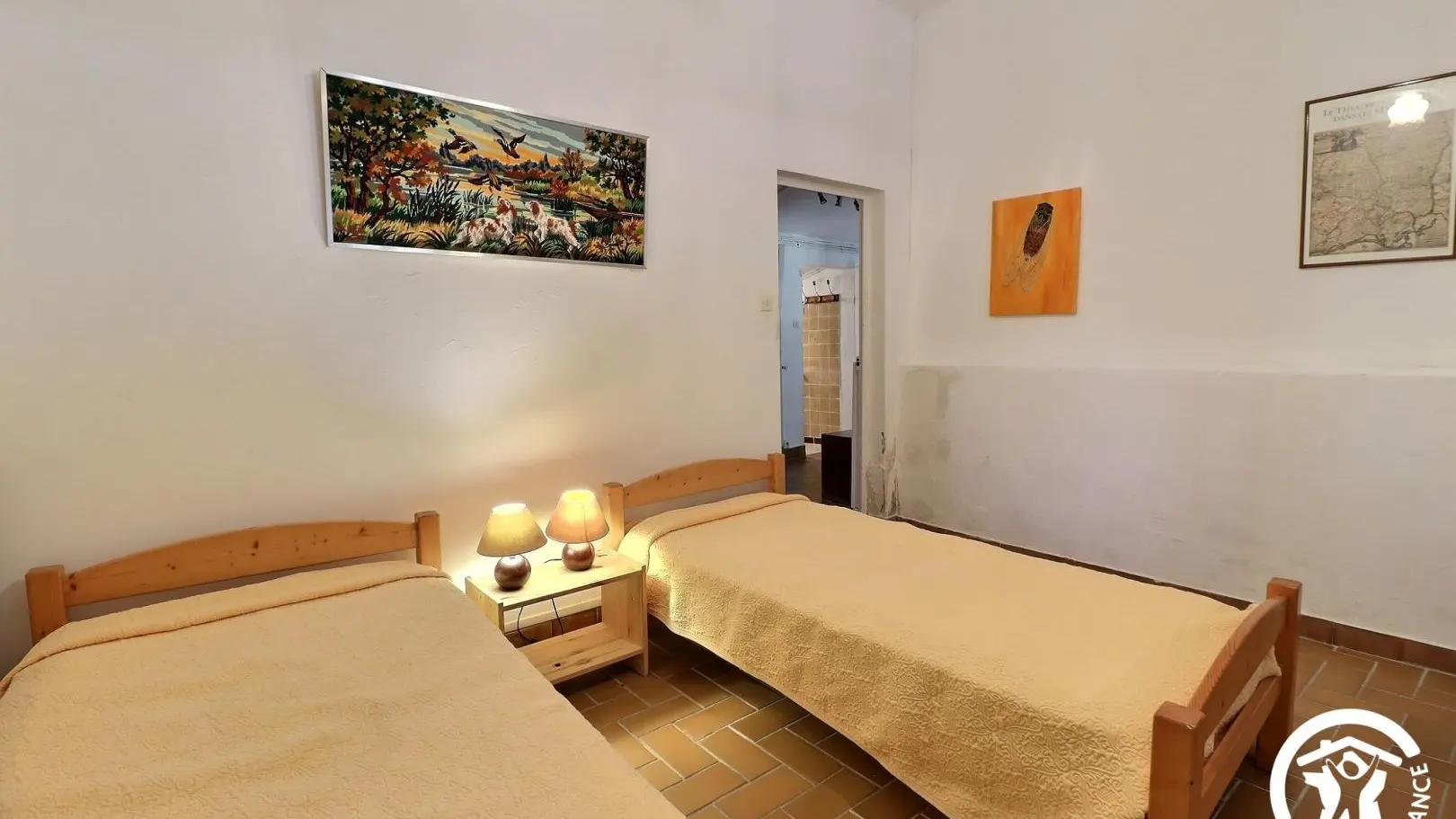 Breeding of Camargue bulls. About 1 km away, a communal heated swimming pool (12x6 - 1m30 to 1m60) in an old sheepfold (well done) with showers and toilets. Swimming pool service in supplement: 100 €/week from April to the end of October, to be paid directly to the owner. This single-storey gîte has a kitchen (fridge/freezer, gas hob with 3 burners and 1 electric hob, extractor hood, microwave, oven). Independent living room with dining area and lounge in front of the fireplace (TV). 3 bedrooms: 1 bedroom with 1 double bed 140x190cm, baby bed, private bathroom with shower and WC. One bedroom with 2 single beds 90x190cm. One bedroom with 1 single bed 90x190cm. 2 independent bathrooms with showers. Independent WC. A covered outdoor veranda of 20 m². Private space of 75 m² with garden furniture on a common ground not closed. Barbecue, parking. Central heating (fixed price 70€/week). Baby bed and chair. Cleaning on request (40€). Pets allowed with a supplement of 15€/day/pet. Condition of reception of the animals: dog held in lead, vaccination book, insurance certificate, collection of the droppings. No cats allowed.