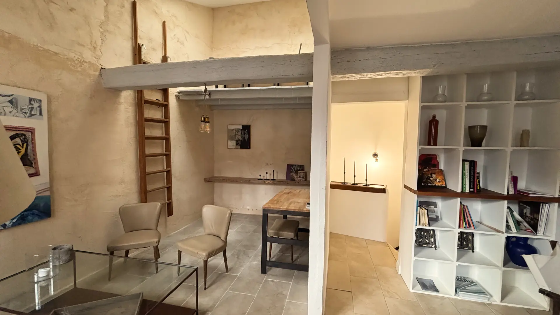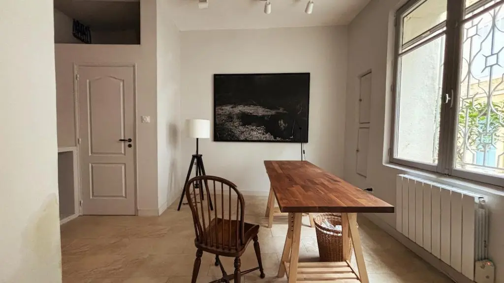 The house is both cozy and spacious: the artist studio-gallery on the ground floor allows resident artists to work, create, and exhibit their work. The space, about 30 m², is equipped with an independent toilet and professional lighting. A large window and a glass entrance door provide direct access to the studio-gallery from the outside.