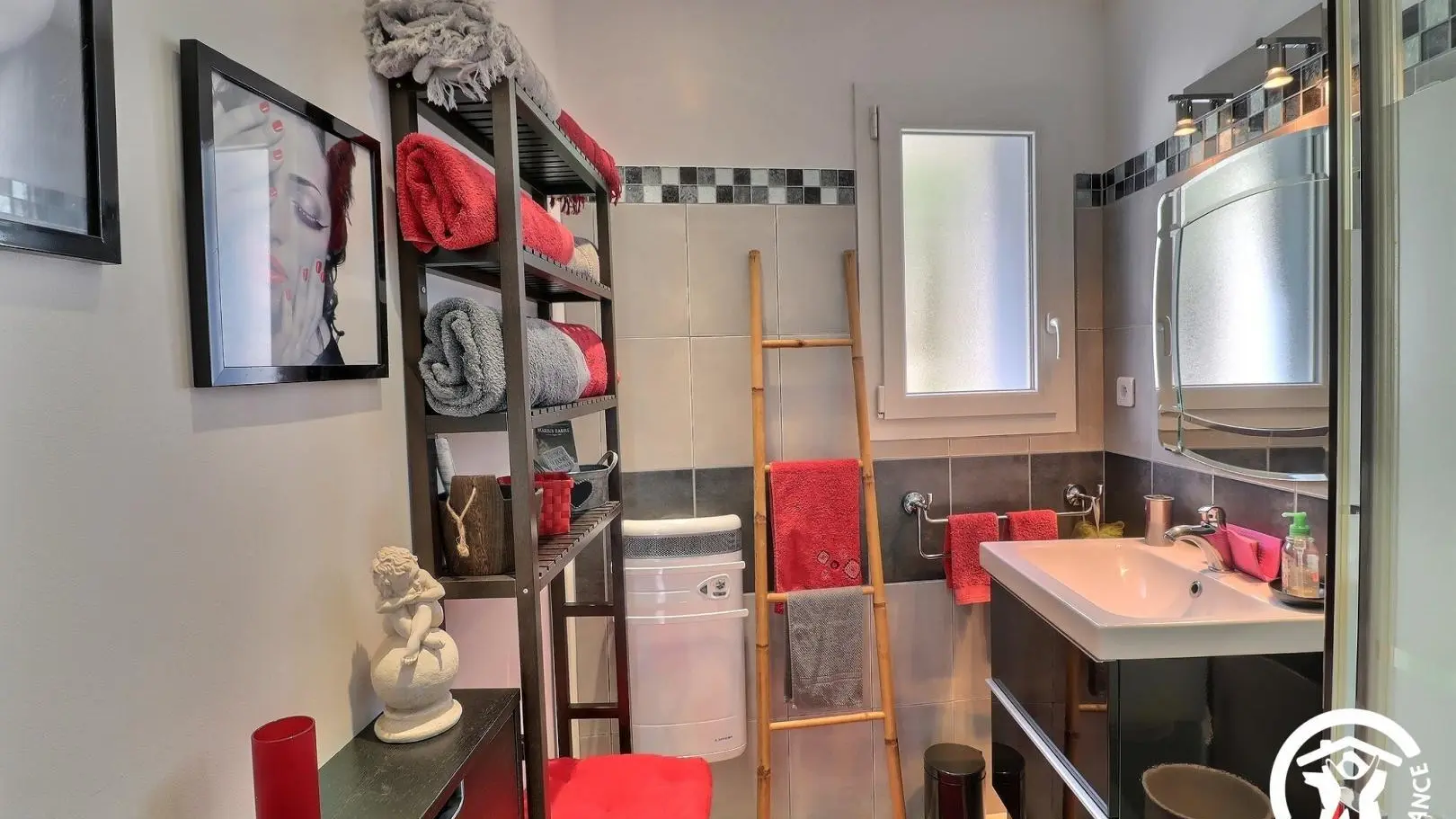 On the heights of the village near Salon de Provence, very attractive holiday cottage on the first floor, adjoining the house of the owners ( independent access) and renovated in 2013. Magnificent view on roofs and surrounding hills, departure of hiking trails at the foot of the house. Public parking lot 10 meters far. Mini-terrace with garden furniture for breakfasts in the summer months. Main room with comfortable lounge (television flat screen, DVD, hi-fi system), fully-equipped kitchen (washing machine, microwaves, oven). Sofa for 2 people. Room with double bed (160x200). Shower-room. Independent Toilets. Included : sheets, linen, heating, cleaning on request (30€). Electric heating. Bed and chair baby on request. This charming holiday cottage(shelter) will suit perfectly to discover Provence, from a peaceful and green place.
