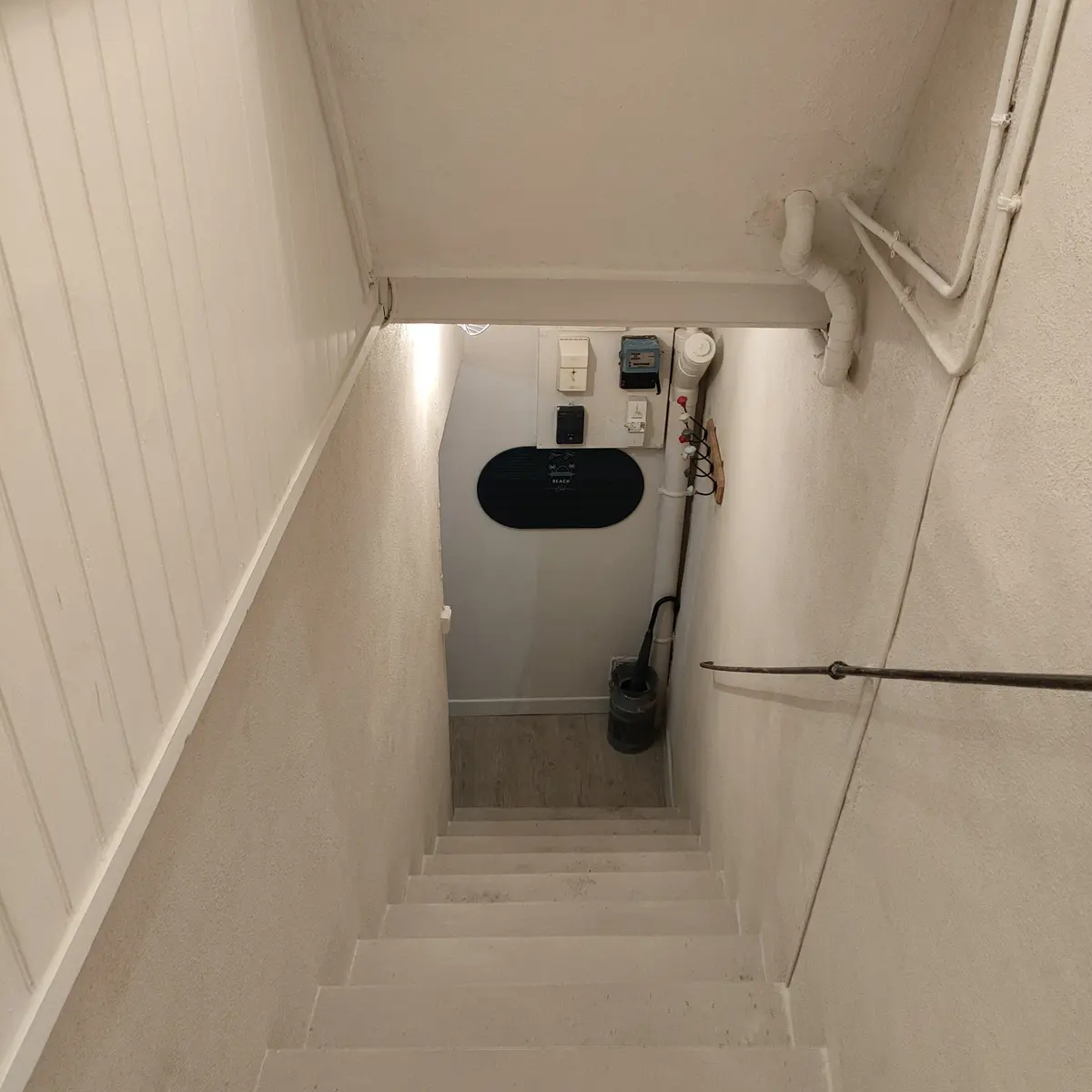 Upstairs, a large, bright bedroom with double bed (160cm), dressing room and shower room.