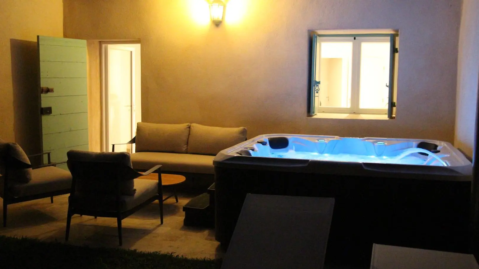 The Jacuzzi is not functional, it is being installed.