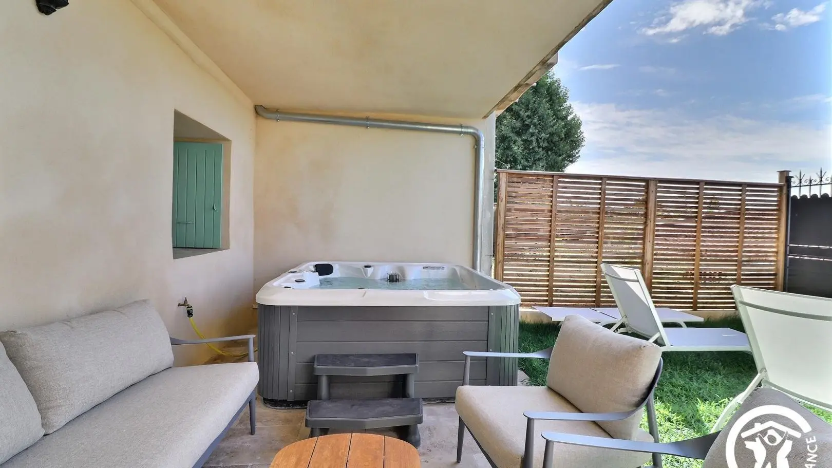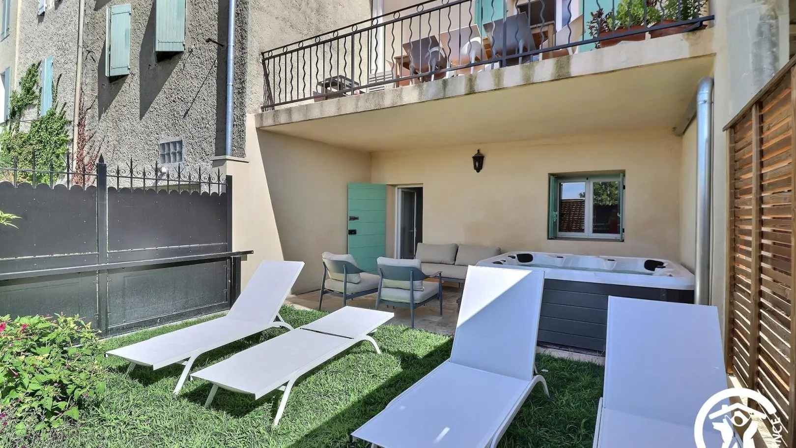 This town house on 3 levels has a terrace on the kitchen level with table, parasol and plancha, and a terrace with jacuzzi and garden furniture on the garden level.