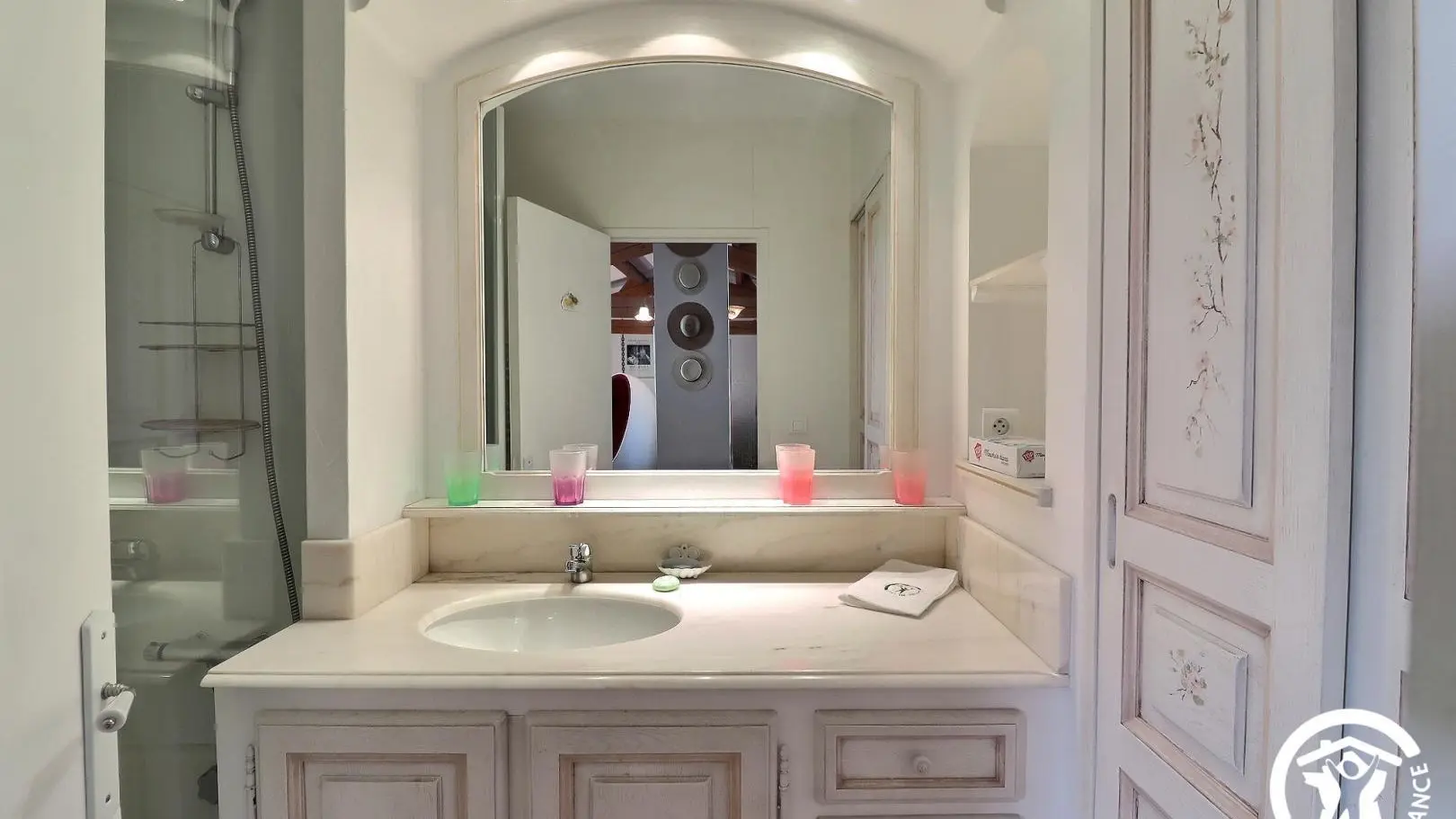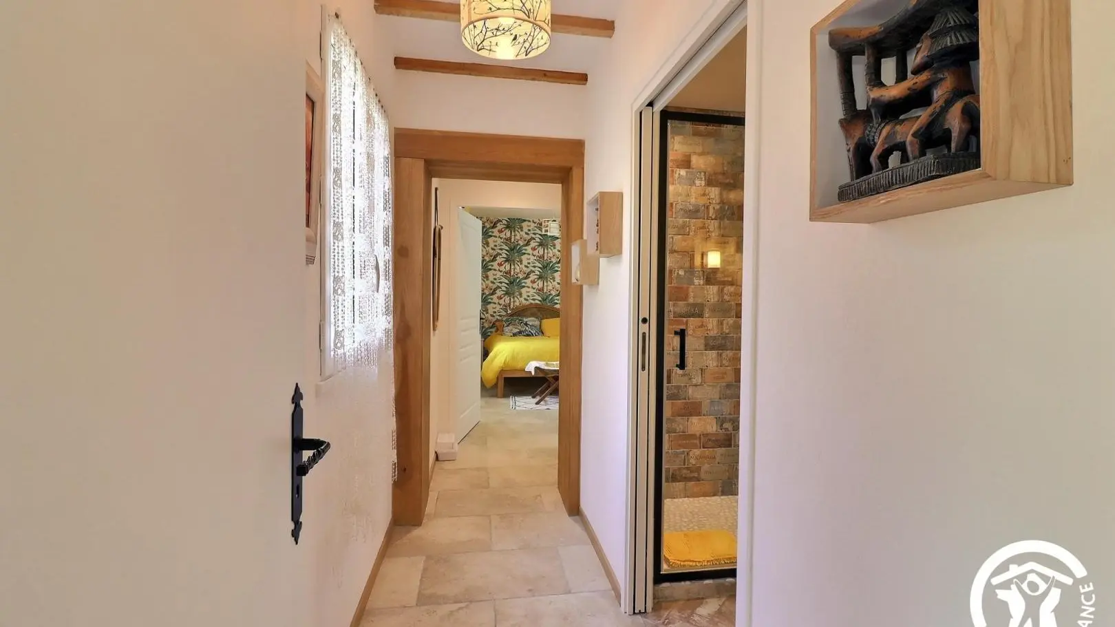 Discover the surrounding tourist attractions thanks to its central location or enjoy the garden, its terraces and its atypical swimming pool (Approximately 13m long by 5m wide, diamond depth of 1m20 to 2m20 with salt). Fully air-conditioned, with heated and cooling floors, the gîte is composed on the ground floor of: