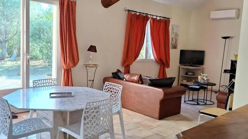 Between Camargue and the Alpilles, a south-facing gite adjacent to 3 other gites, separate from owners. Tree-lined estate with small water feature; peace and quiet assured. Gite has air condition. Swimming pool (6x12 m) from may till October. covered parking shelter. Gite has air condition. Ground floor : kitchen/dining area and lounge. Bathroom:WC. Mezzanine: 2 sleeping areas separated by partition (1 double bed, 2 single beds) with 1 window each. Electric heating. Shared laundry. terrace (13 m²) with garden furniture, table tennis, bicycles. Shared enclosed lawn (4000 m²) for badminton, and boules games. Gite access closed at night.