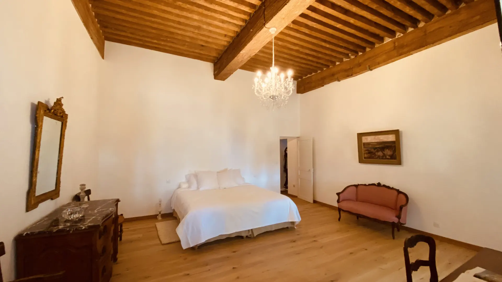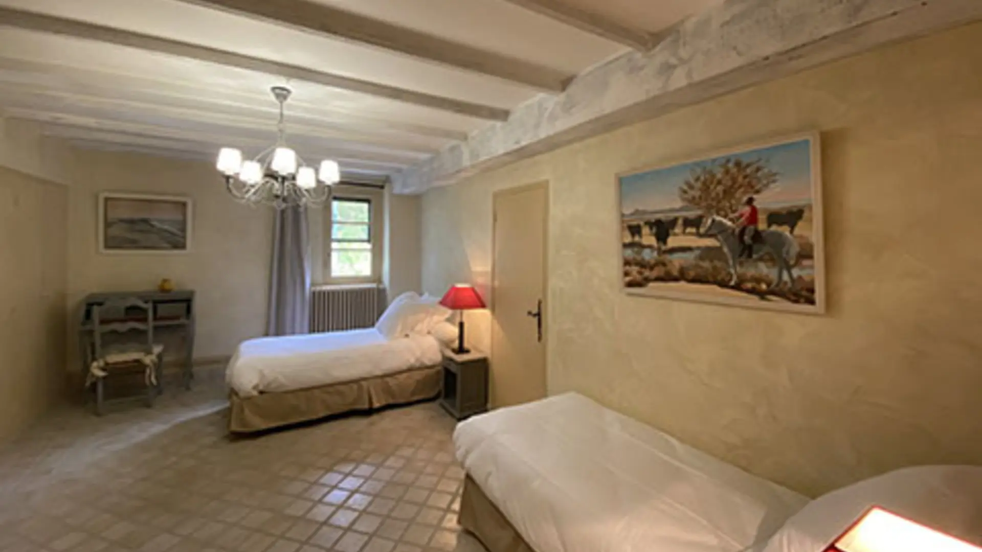 In the garden of the Château de Méjanes, a small independent house of 29 m² is equipped with an entrance with a double sofa, a bedroom with a double bed and a large bathroom. This accommodation is not equipped with a kitchen, so it is ideal as an extra room for the guests of the Château de Méjanes.
