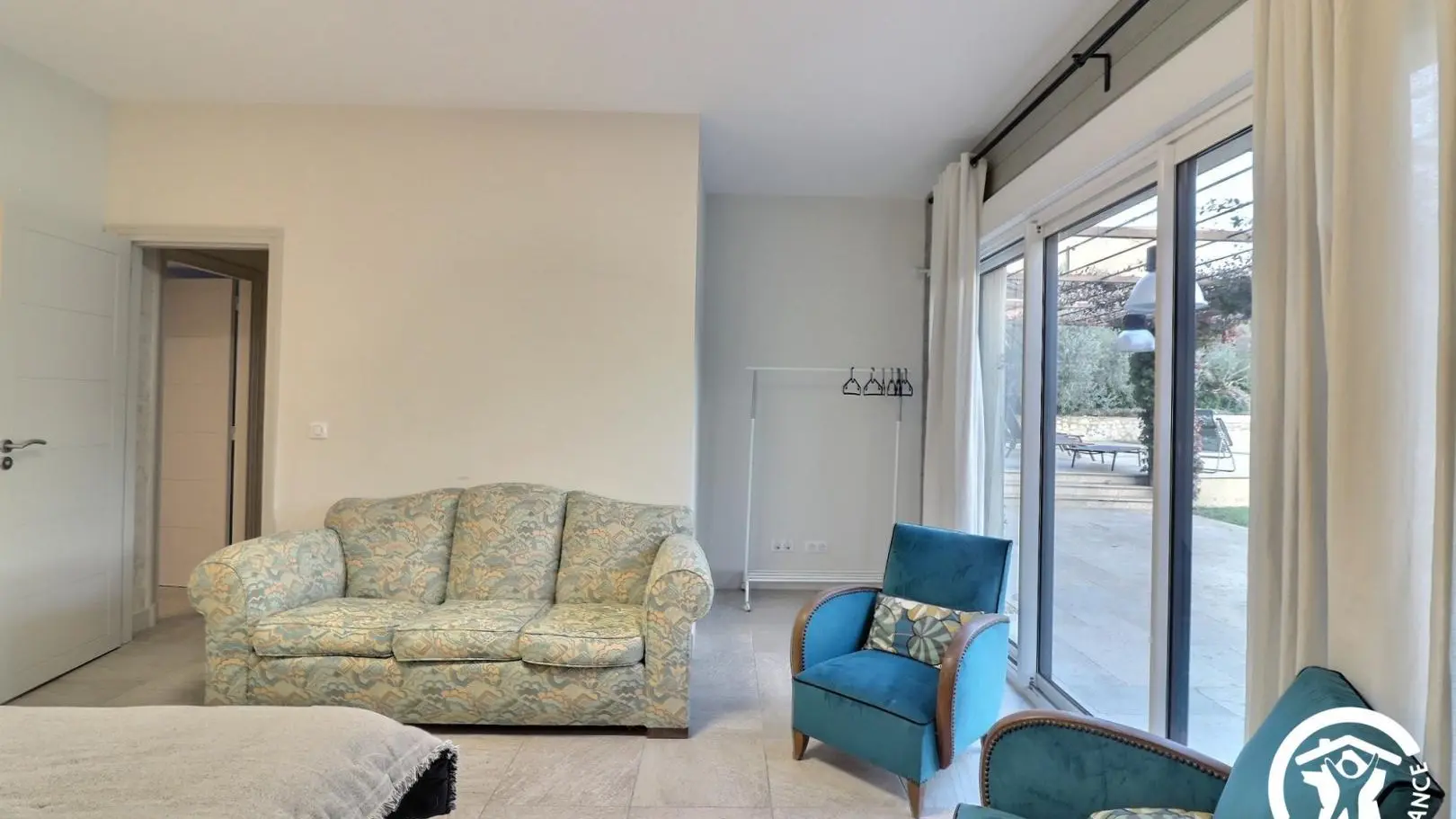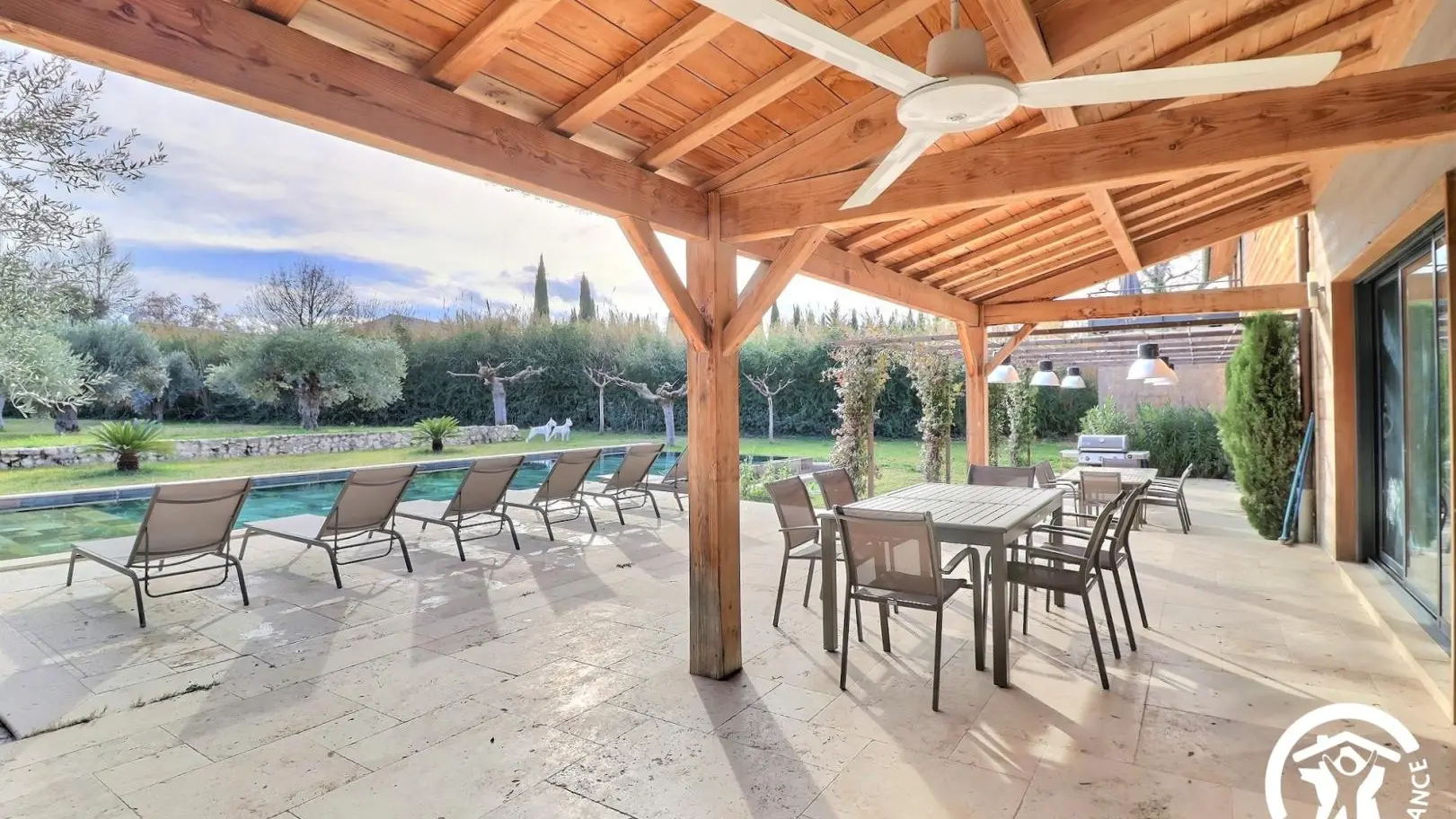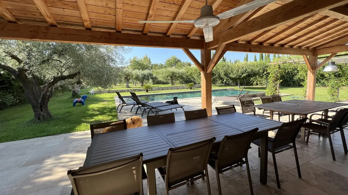 Le Mas des Chênes Verts is a large house of 260 m² with 6 bedrooms, private heated infinity pool, beautiful sheltered terrace and large private garden with olive grove.
