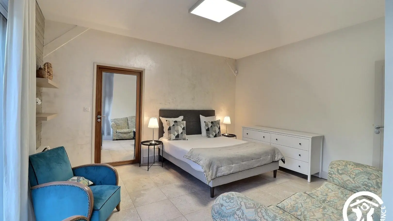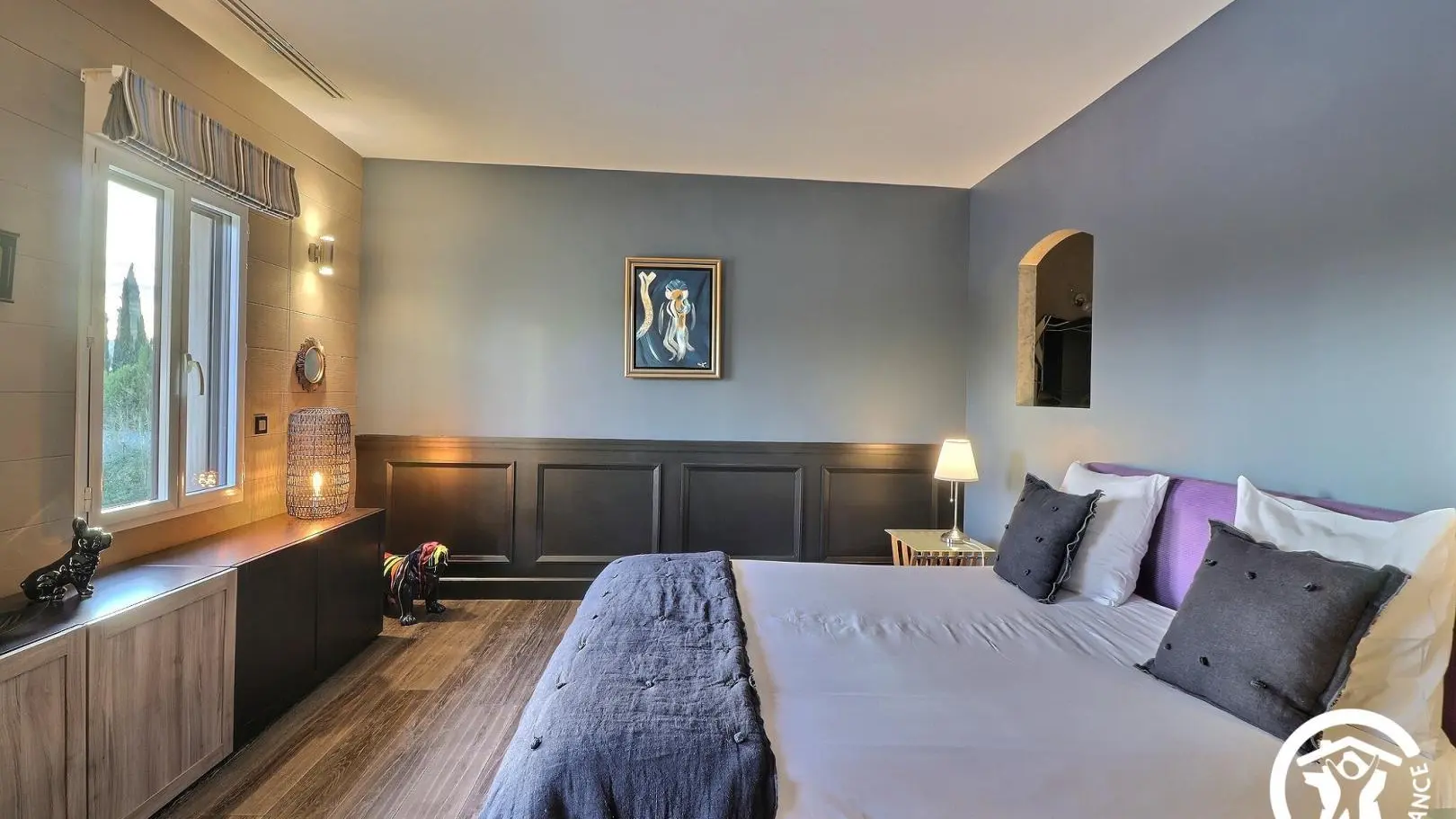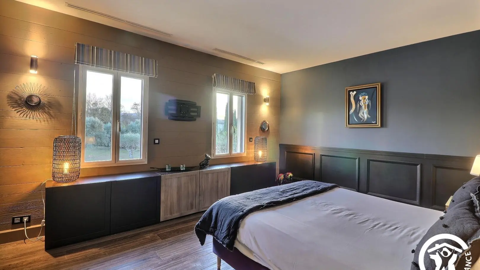 Le Mas des Chênes Verts is a large house of 260 m² with 6 bedrooms, private heated infinity pool, beautiful sheltered terrace and large private garden with olive grove.