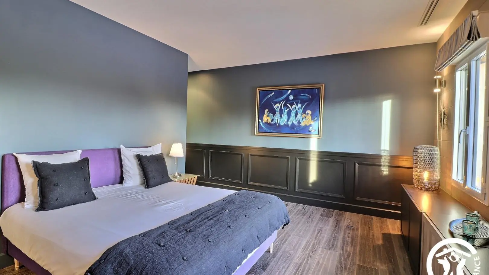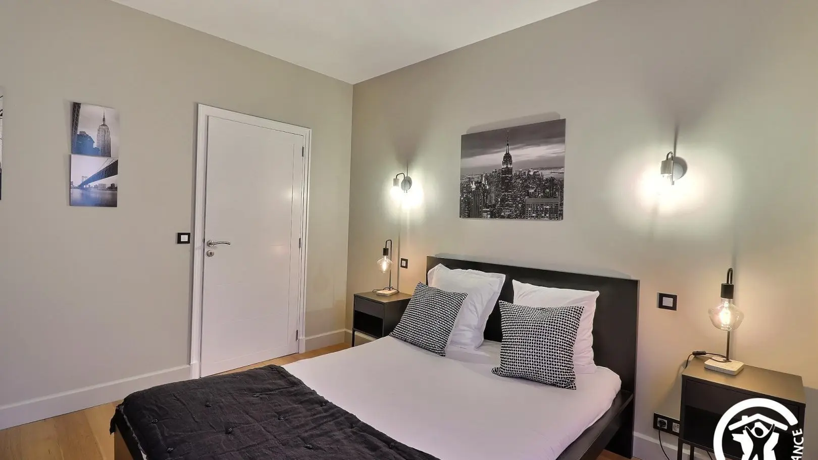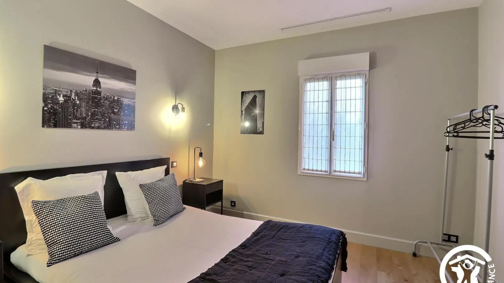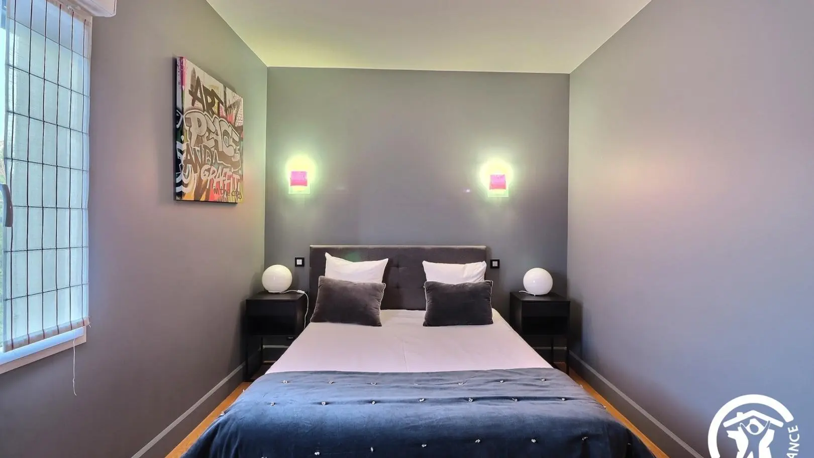 - 2nd bedroom with 1 bed 160x200cm, clothes rack, chest of drawers and 2 armchairs. Bay window overlooking the terrace and the swimming pool, convector fan and full-length mirror.