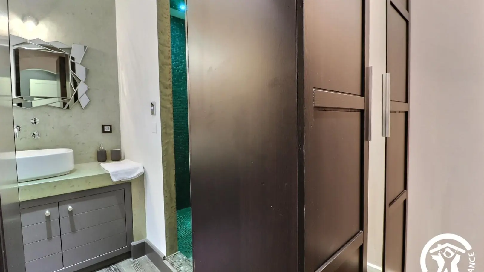 - 3rd bedroom with 1 bed 160x200cm, large chest of drawers, flat screen TV, dressing room and private bathroom for this bedroom with large basin and large walk-in shower with ambient lights.