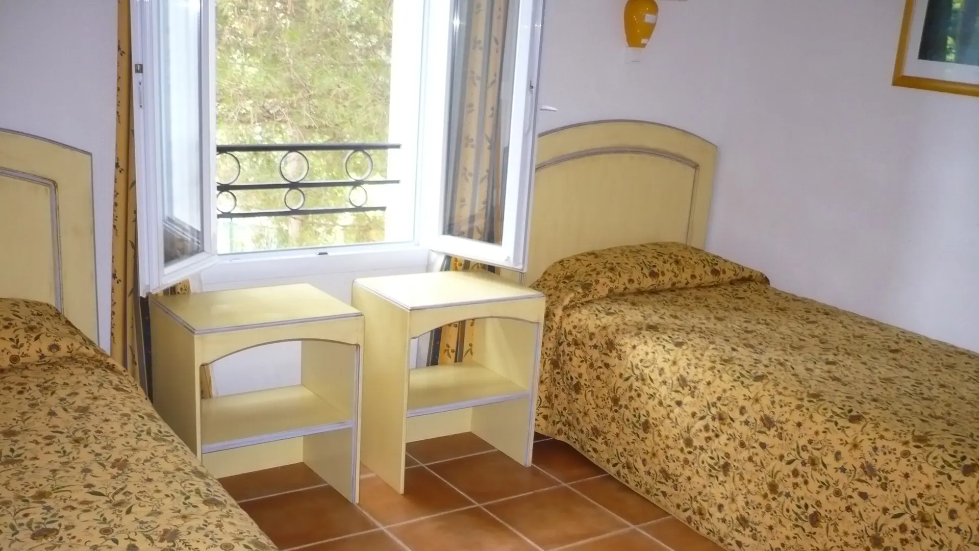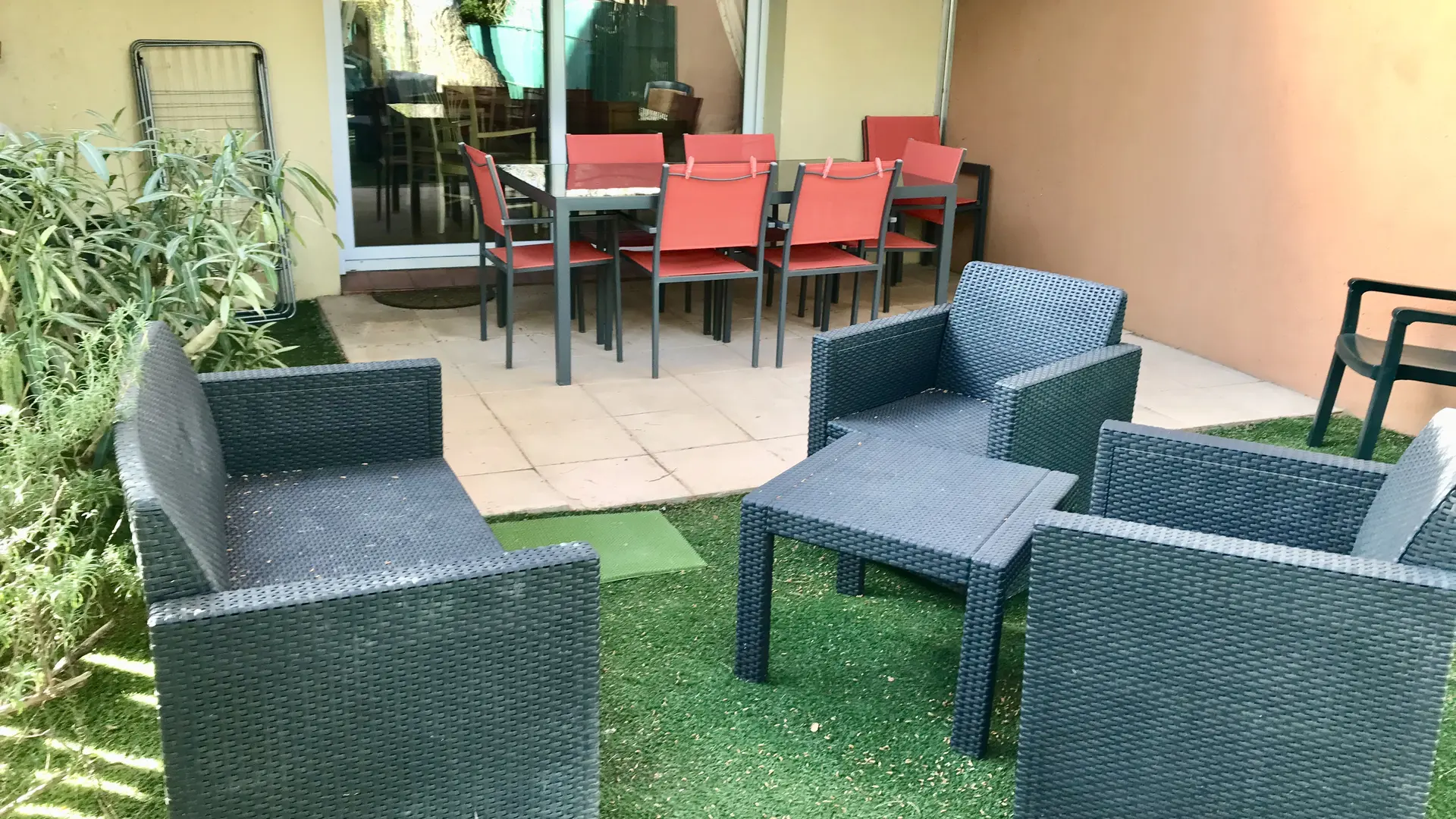The residence is fully fenced and secure. Our mazets, inside the residence, have an enclosed and protected garden. Each is an individual house for 6 people with its own garden, surrounded by oleanders and other Mediterranean plants. The gardens are half shade, half sun, not overlooked and absolutely quiet. The interior decoration of each mazet is entirely Provencal in style, and each is equipped with reversible air-conditioning for winter heating. The terraces are well-appointed with tables, armchairs and chairs. There are 2 bedrooms upstairs and the bedding is of excellent quality. The equipment is complete and meets the requirements of a 4-star rating. There is reserved parking for each mazet inside the residence and outside parking close to our mazets for visitors. Our mazets are close to swimming pools and leisure activities (tennis, squash, wellness area, weights room, ping pong, sports coaching, massages, lymphatic drainage, sauna, hammam...). Shops are close by, as is the town of Arles.