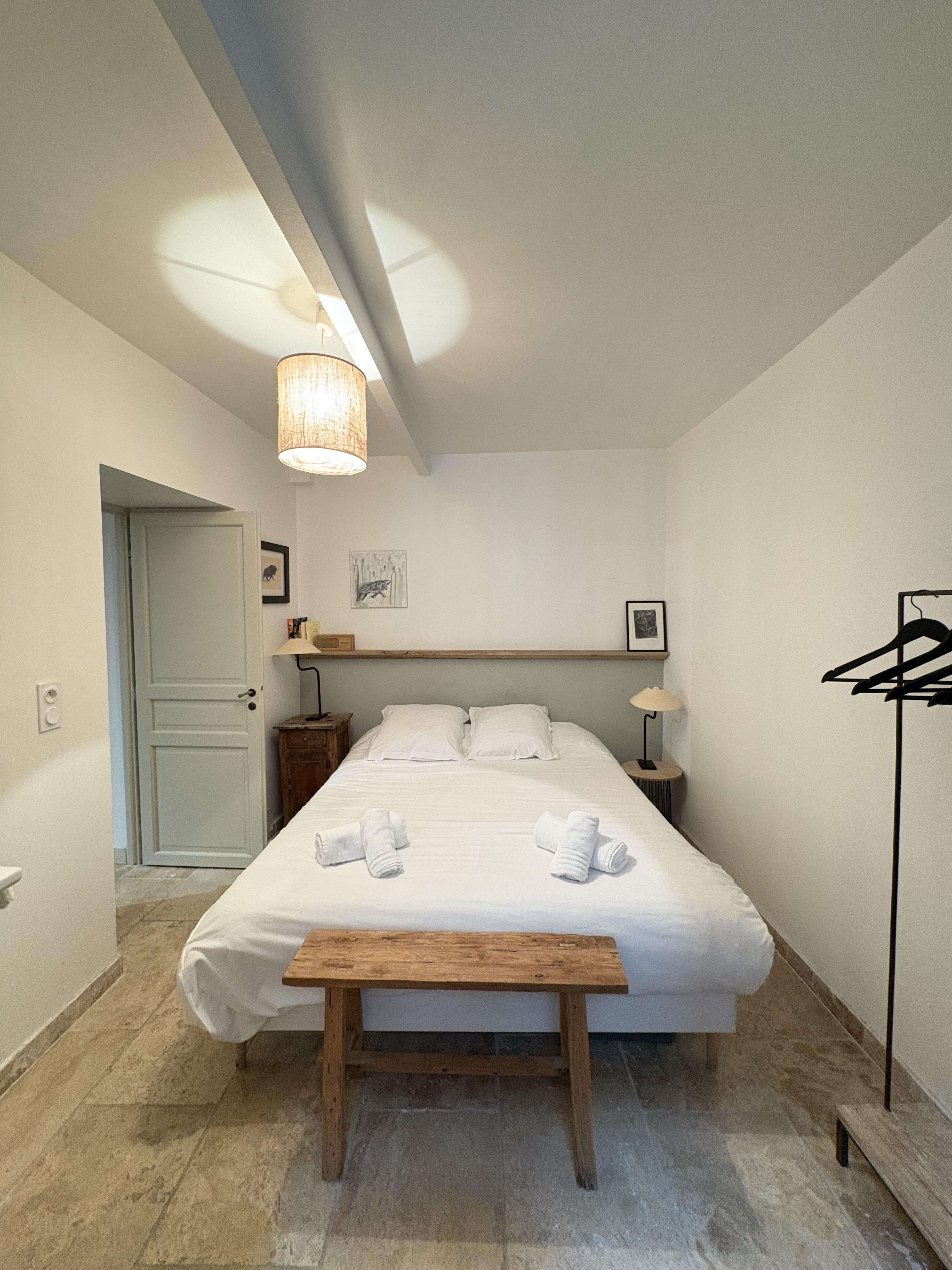 - The bedroom with a double bed,