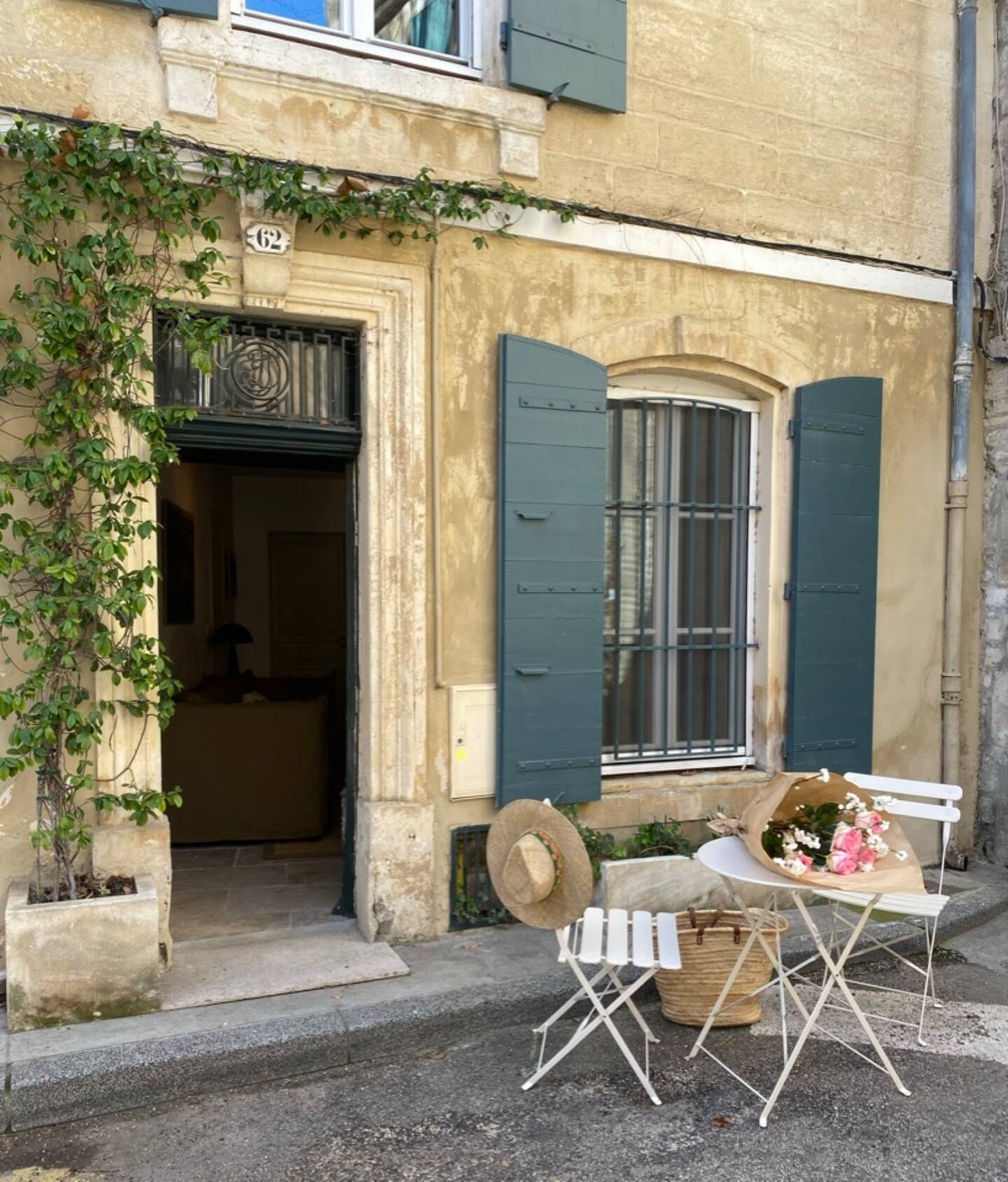 A large plane tree as a neighbor brings freshness to the small square in front. A small table and outdoor chairs are available to enjoy a coffee in front of the apartment.