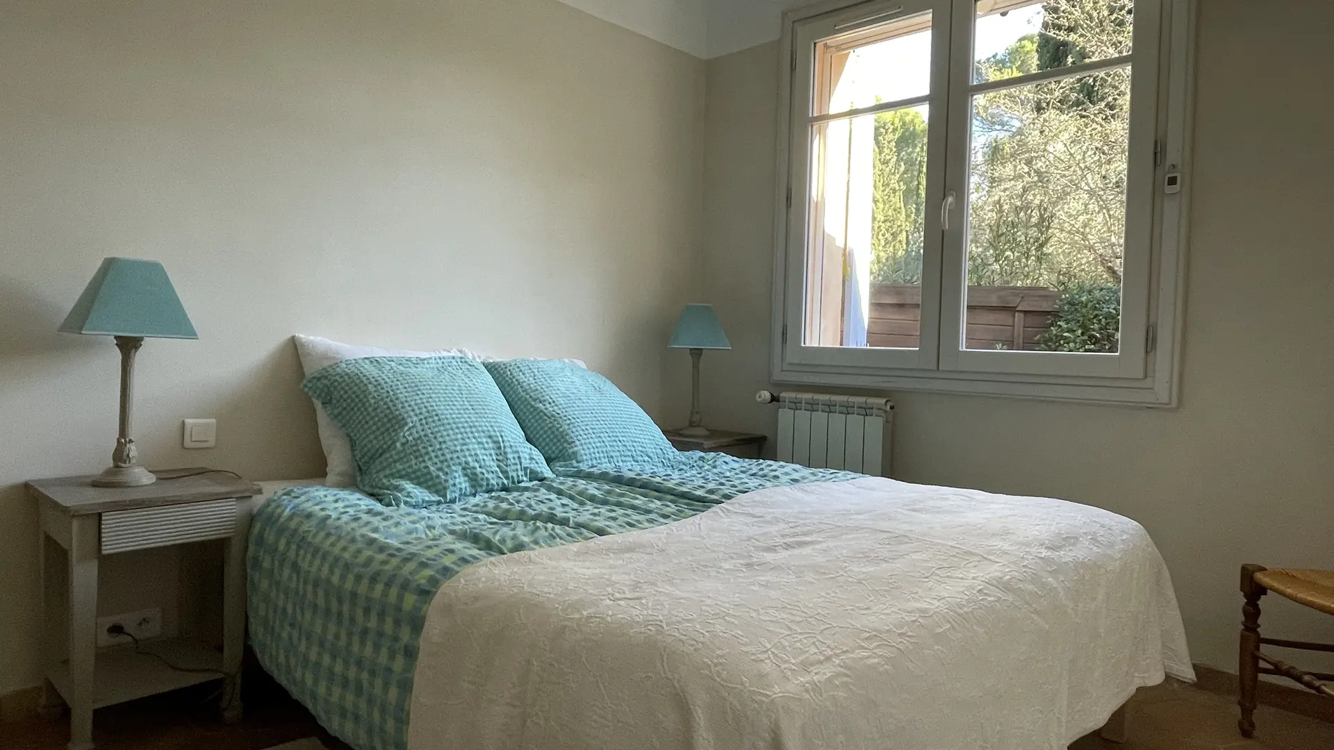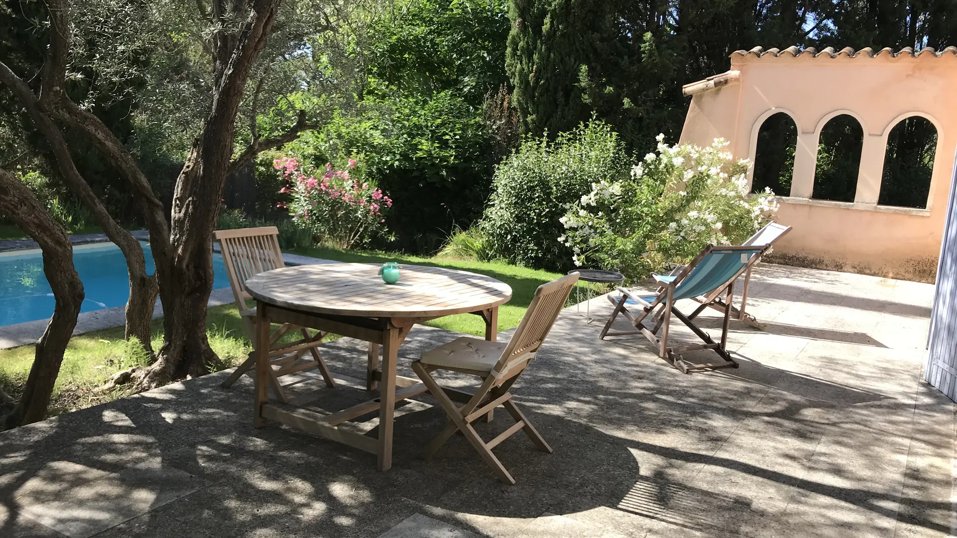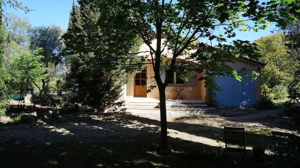The house, cool in summer, is situated in a large garden planted with olive trees, cypress trees, and lavender in a protected nature reserve, yet not isolated.