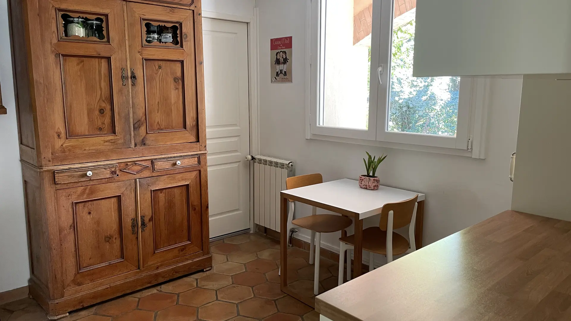 It comprises a spacious and bright living room facing west and opening onto the garden, a bright, air-conditioned bedroom facing east, a well-equipped kitchen, and a bathroom.