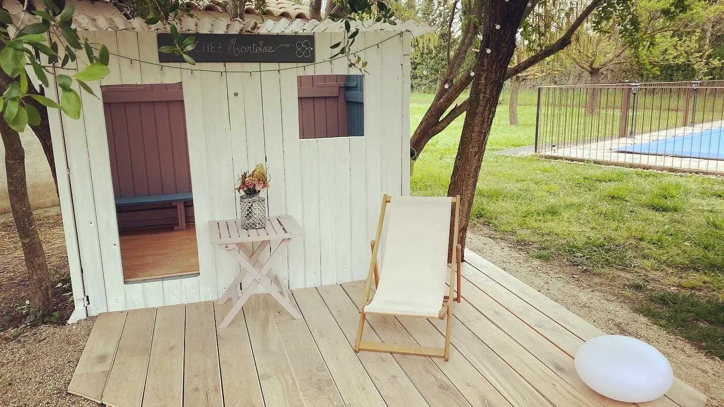 A bathroom with bathtub, sink, heated towel rail and WC. No internet connection. Baby bed and high chair on request. Reversible climate control. Household linen is provided (sheets, towels, tea towels, bath mats). End of stay cleaning included. Private terrace and private grassy land on the south side with electric blinds, garden furniture and plancha. The swimming pool (8x4 m, depth 1.50 m) is fenced and shared with the owners, open from 05/31 to 08/31 (variable depending on the weather).