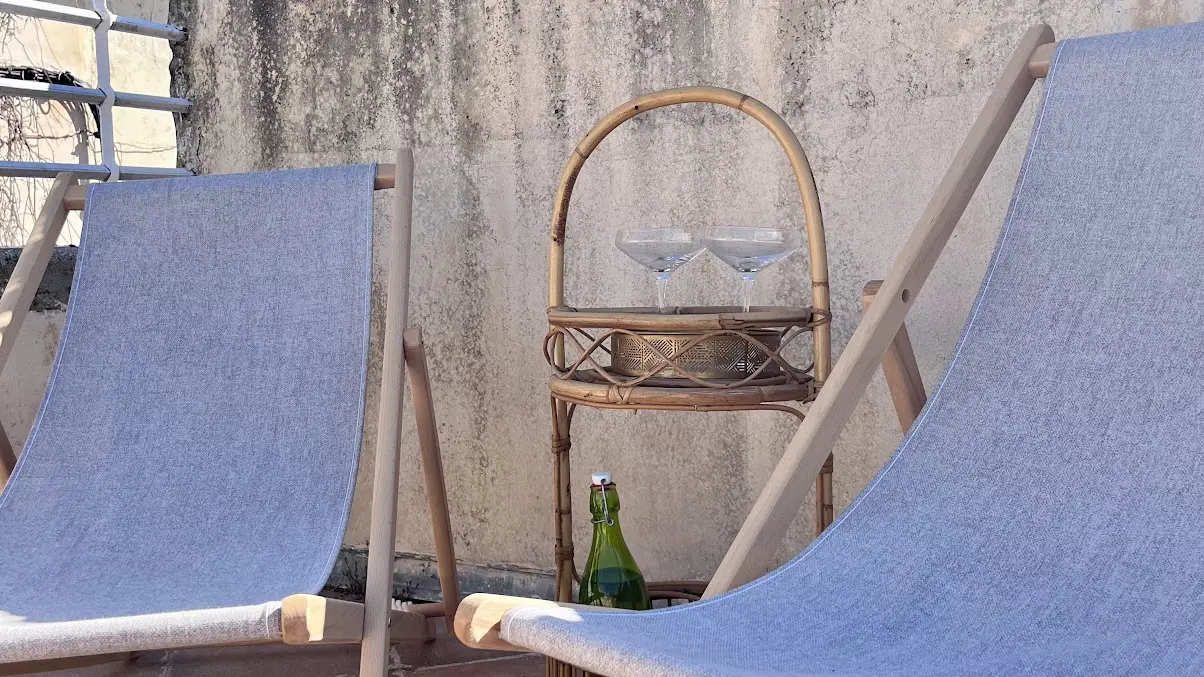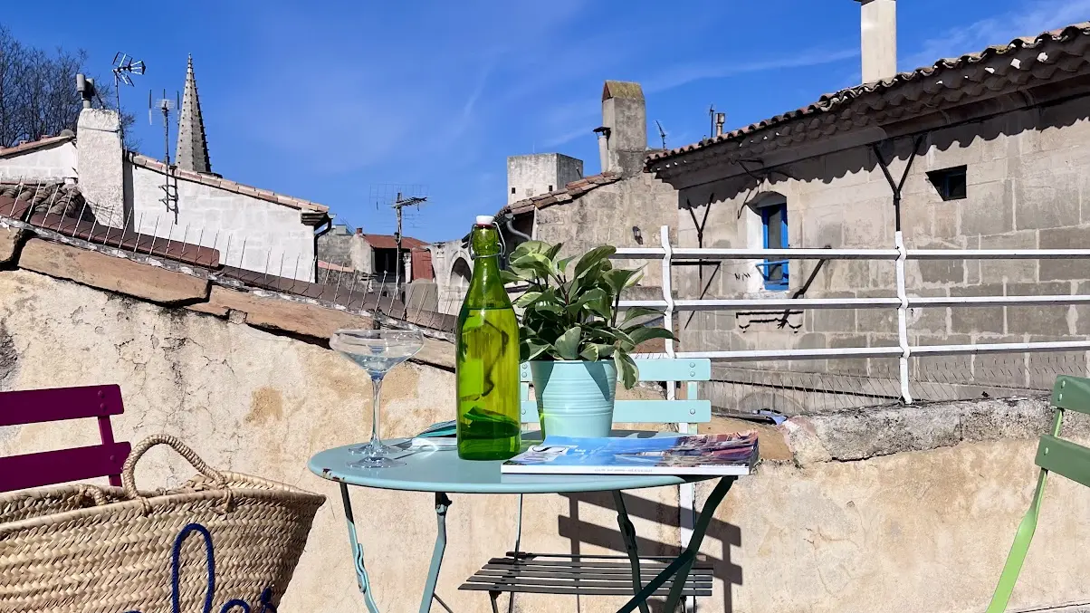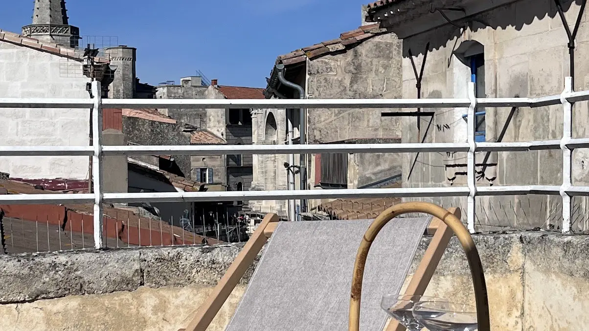 An office that can be used as a work space or for yoga relaxation, for example, opens onto a large terrace with an unobstructed, partial view of the Arènes just a few meters away.