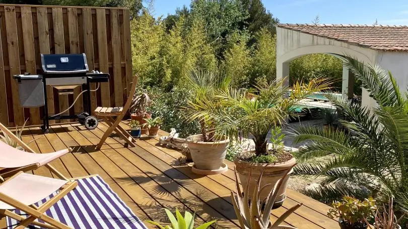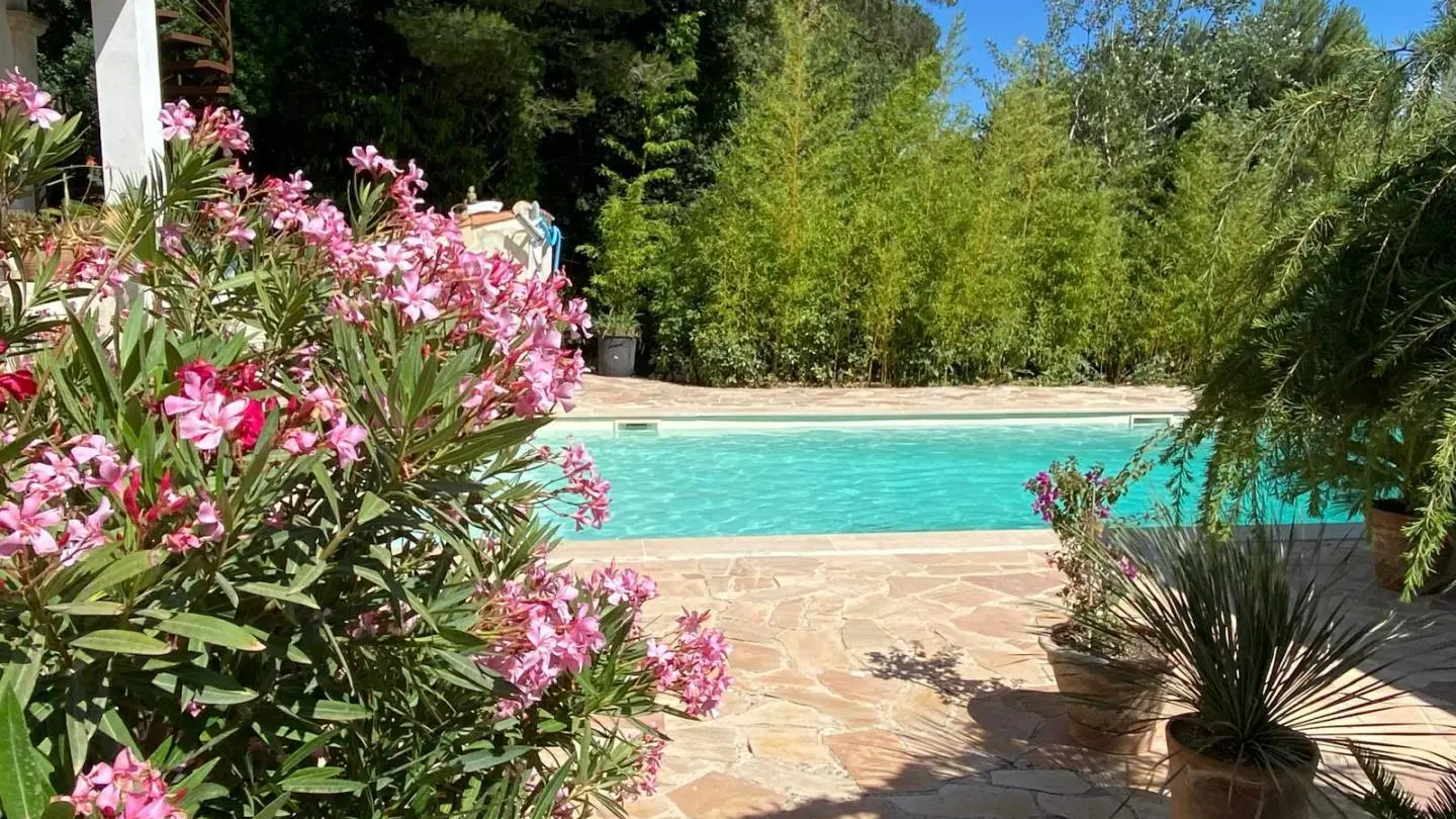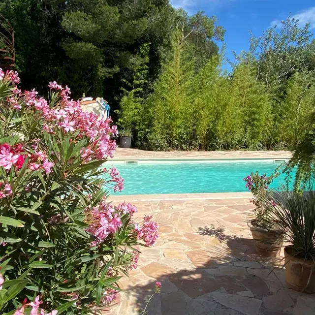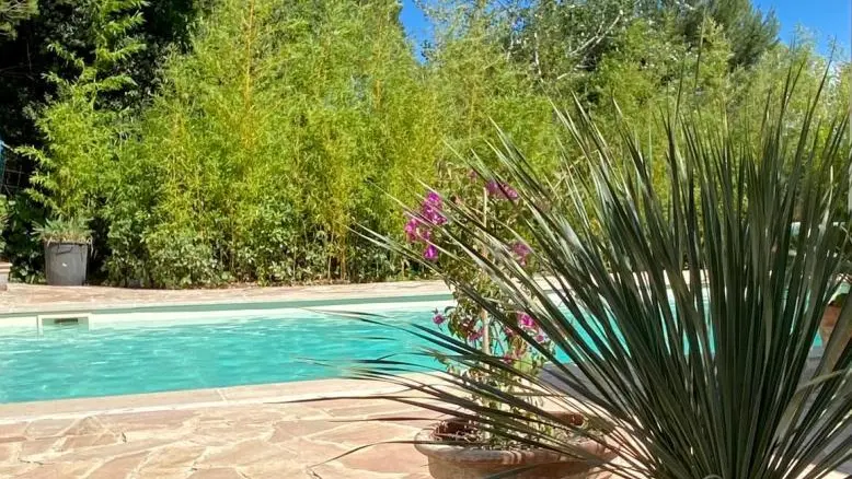 - a bathroom with Italian-style shower, sink and shelves. Salt pool shared with the owners (opening from June 15, 2024): 10x5m, maximum depth 3m, accessible from 9:30 a.m. to 7 p.m., secured by alarm. Reversible climate control. Wifi (fiber). Sheets, bathroom linen, pool towels and end-of-stay cleaning included. Baby equipment on demand. Additional person (15€/day).
