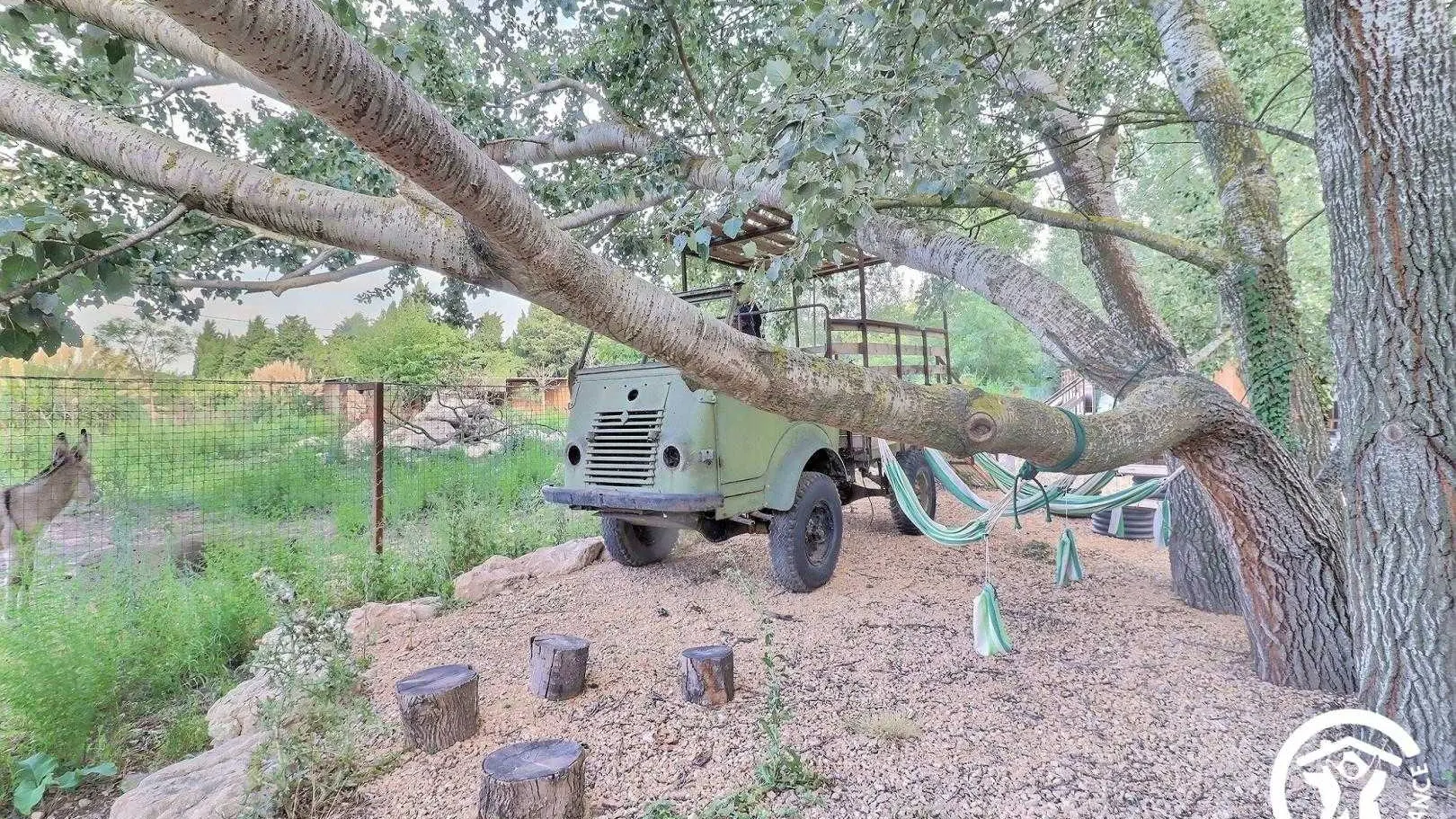 - The Unic OM for Adventurers: covered, with a high plate to pass to enter, this truck with colorful and baroque decoration includes 1 bed 110x190cm, for 1 person (or a very loving couple!), desk, armchair, chairs and bench. The Truck Lodges have electric heating in winter and a fan available in summer. The shared sanitary facilities include a toilet with washbasin and a bathroom with 2 basins and Italian type shower 80x100cm. Common dining area available with fridge/freezer, dishwasher, coffee maker, kettle, toaster and crockery available. Beautiful common outdoor space with garden furniture, hammocks, observation point on an adjacent enclosure, Nordic bath (heated). All inclusive: breakfasts, sheets, towels and end of stay cleaning. Many animal discovery activities and meals are offered as options: breakfast, packed lunch, picnic, snack, dinner at the Petit Observatoire, care workshop, personalized guided tour, photo shoot, children's birthday party (see prices on the Animals and Marino website). Staying in an unusual Animals and Marino accommodation helps support the shelter and participate in the rescue of animals.