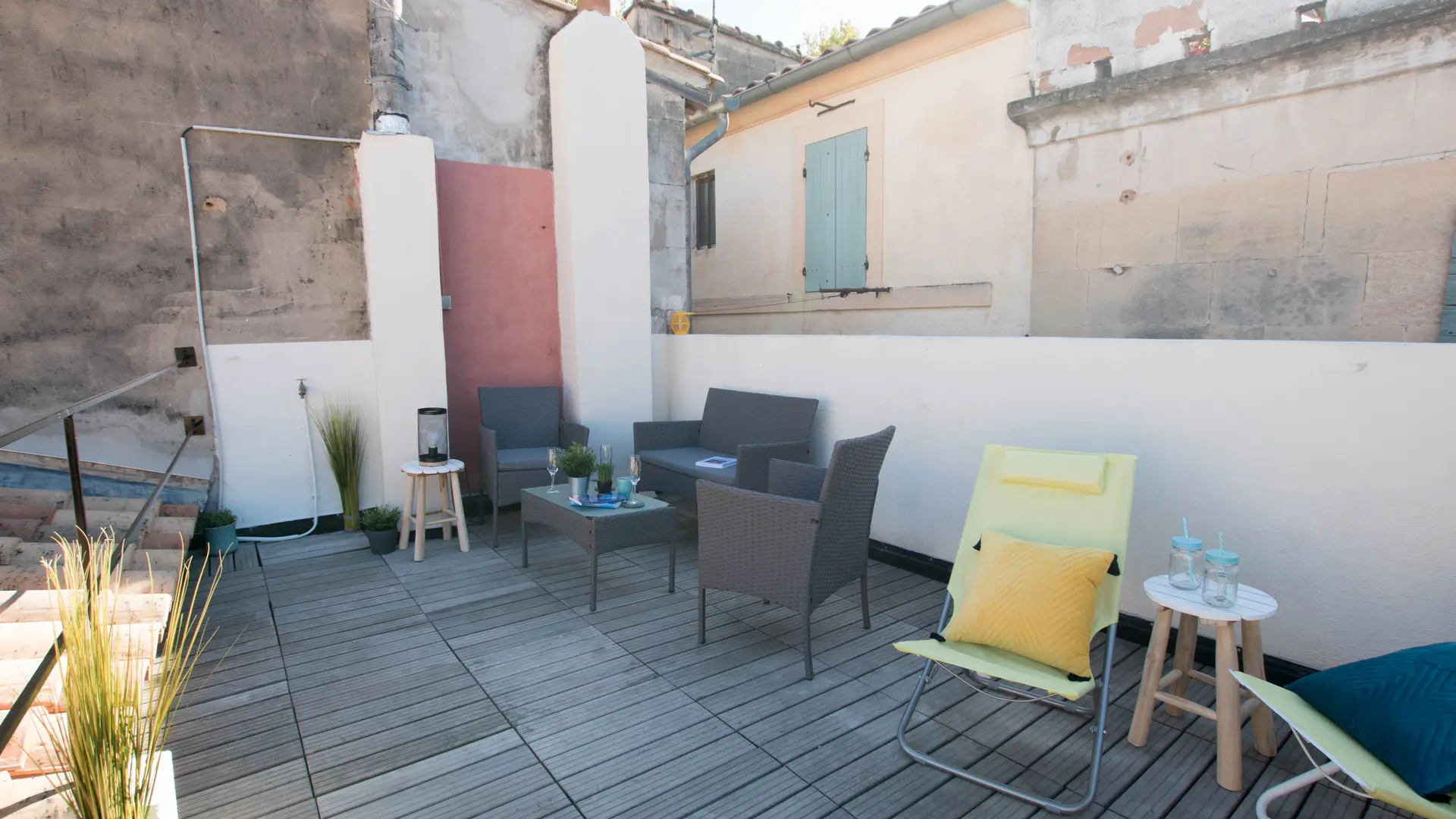 You will have the chance to have your PRIVATE TERRACE on the top floor with a view over the rooftops to enjoy our beautiful Provence sun.