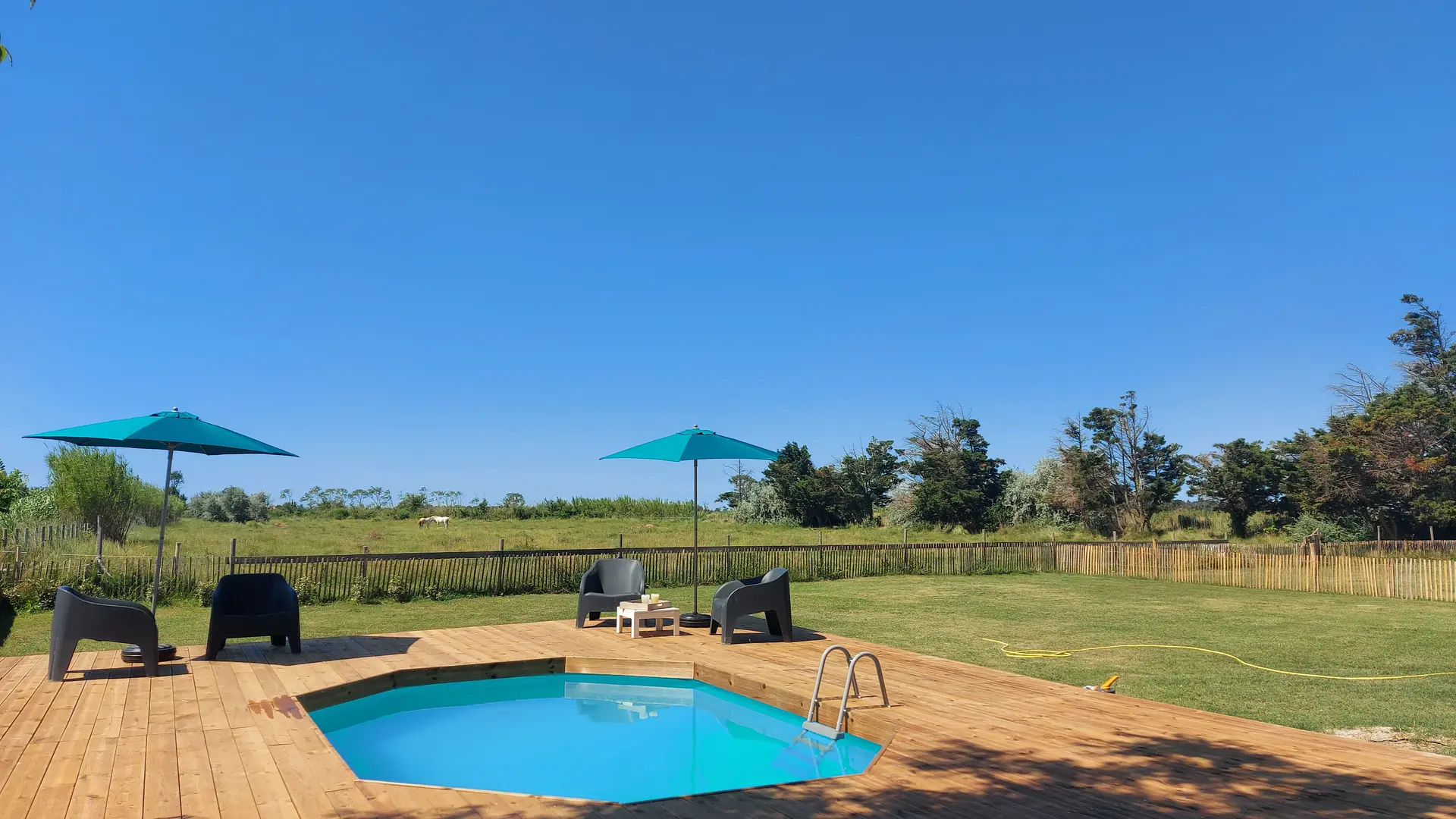 Free parking, access to the swimming pool, petanque court, paillotte (plancha & barbecue area) and sun set terrace.
