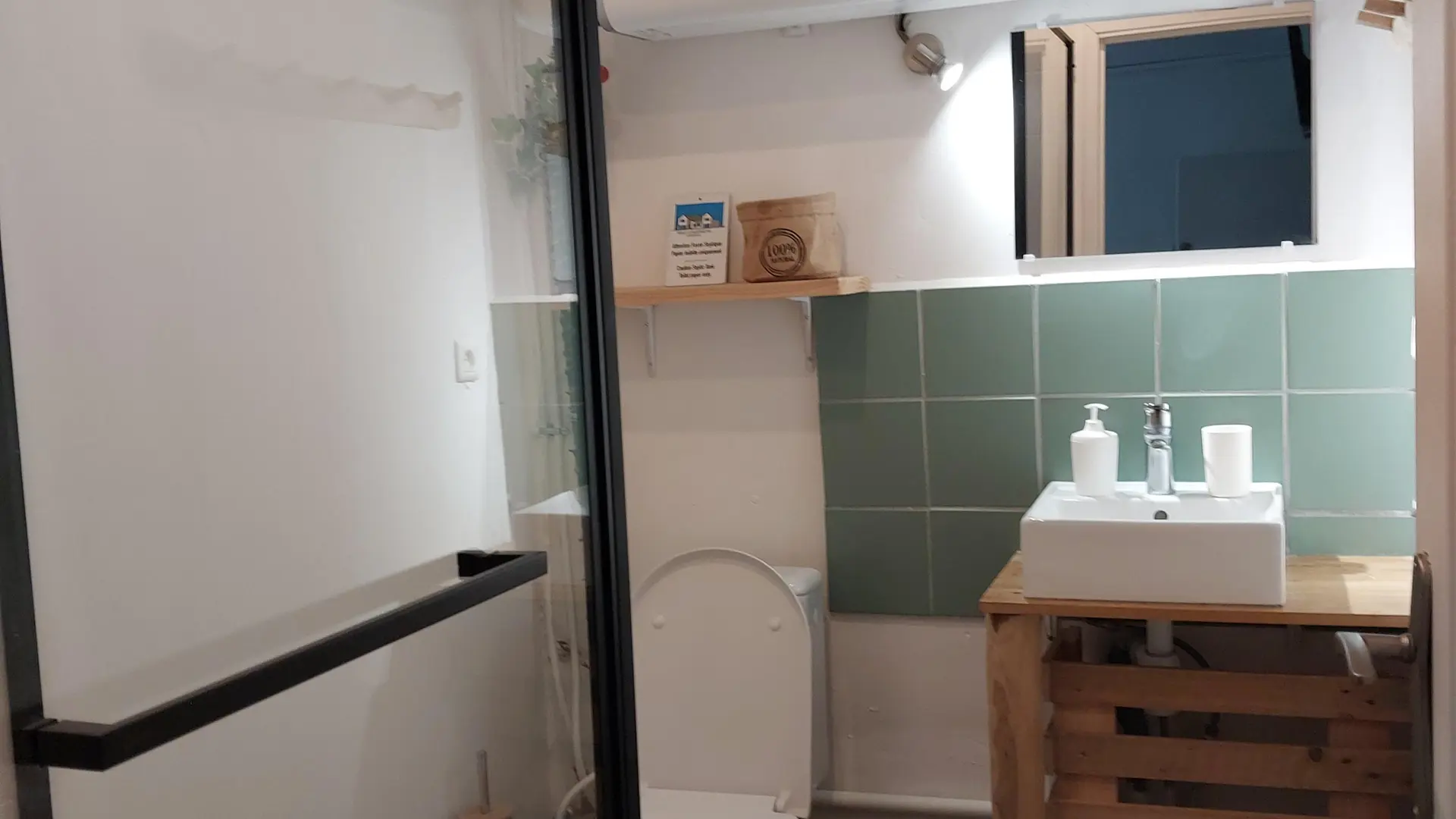 The bathroom is small but comfortable, and can accommodate 1 to 4 people.