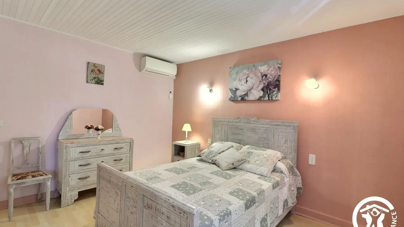 - A third air-conditioned bedroom with a 140x190 cm bed, a chest of drawers, a clothes rack, and a desk.