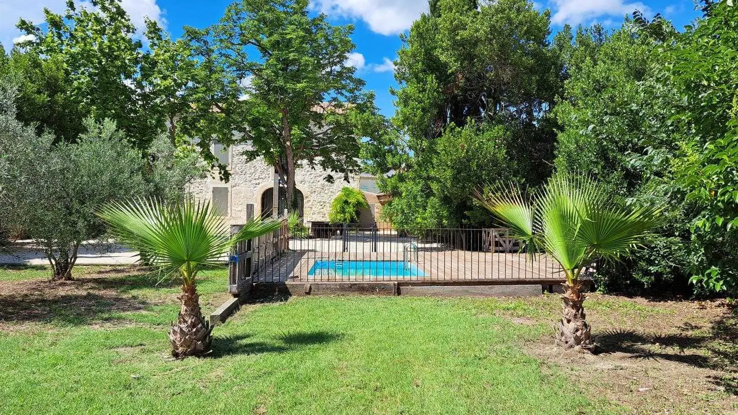 Large garden of approximately 1500 m² planted with trees with a field of olive trees and a beautiful terrace of 225 m² shaded by plane trees, covered terrace with garden furniture and brazier. Swimming pool 3x4m, depth 1.3m, accessible from mid-June to the end of September.