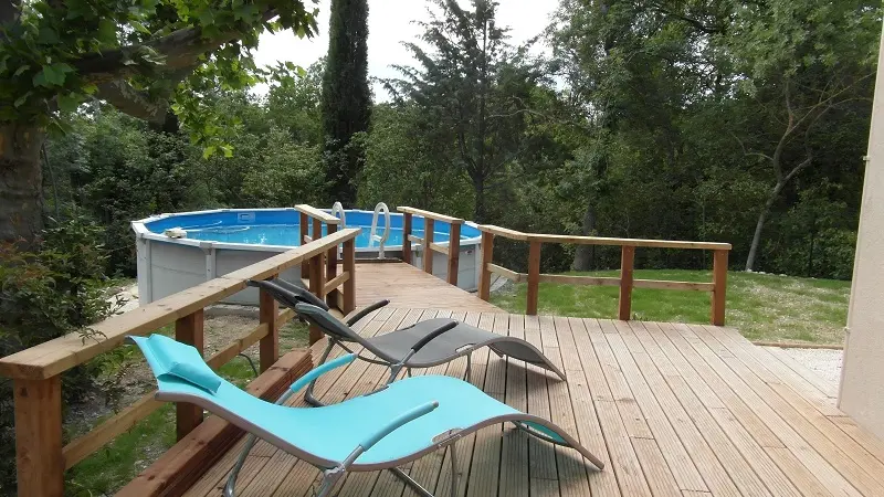 - 4 sun loungers, gas plancha, tables and chairs, parasol.