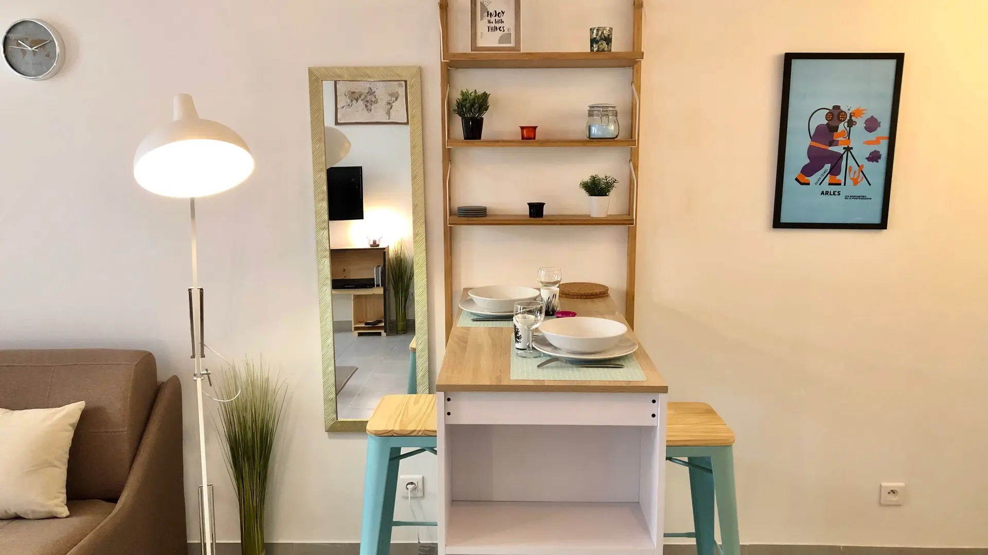 You will have all the comforts of a well-equipped studio: a large sofa bed that is very easy to unfold and comfortable, a washing machine, a large bathroom.