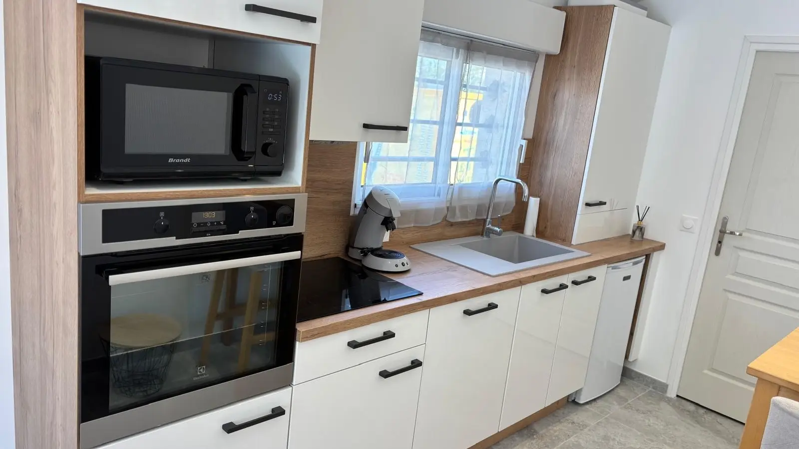 This apartment, with its own entrance, is located in the countryside close to the town center, in a contemporary villa close to all amenities.