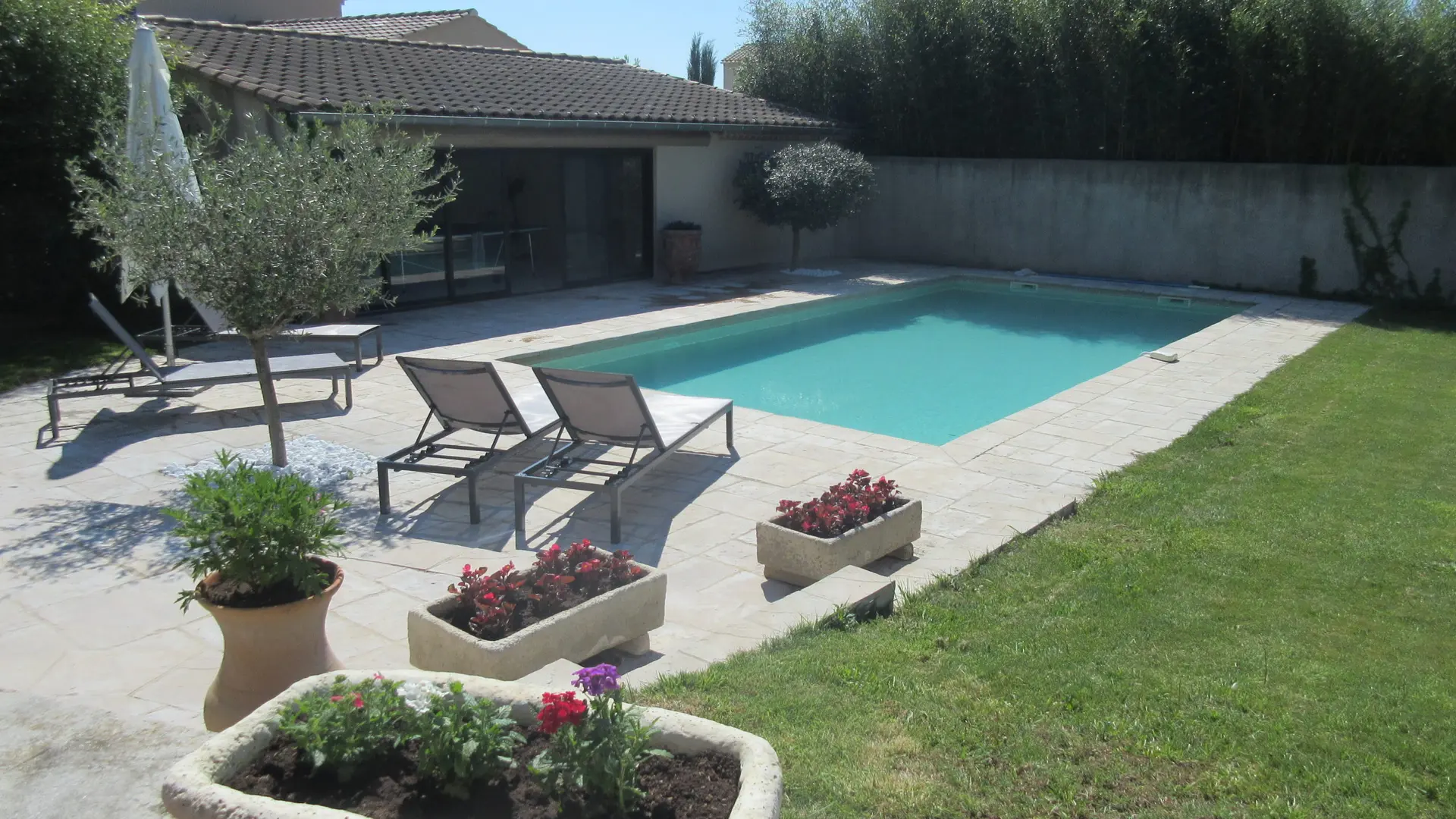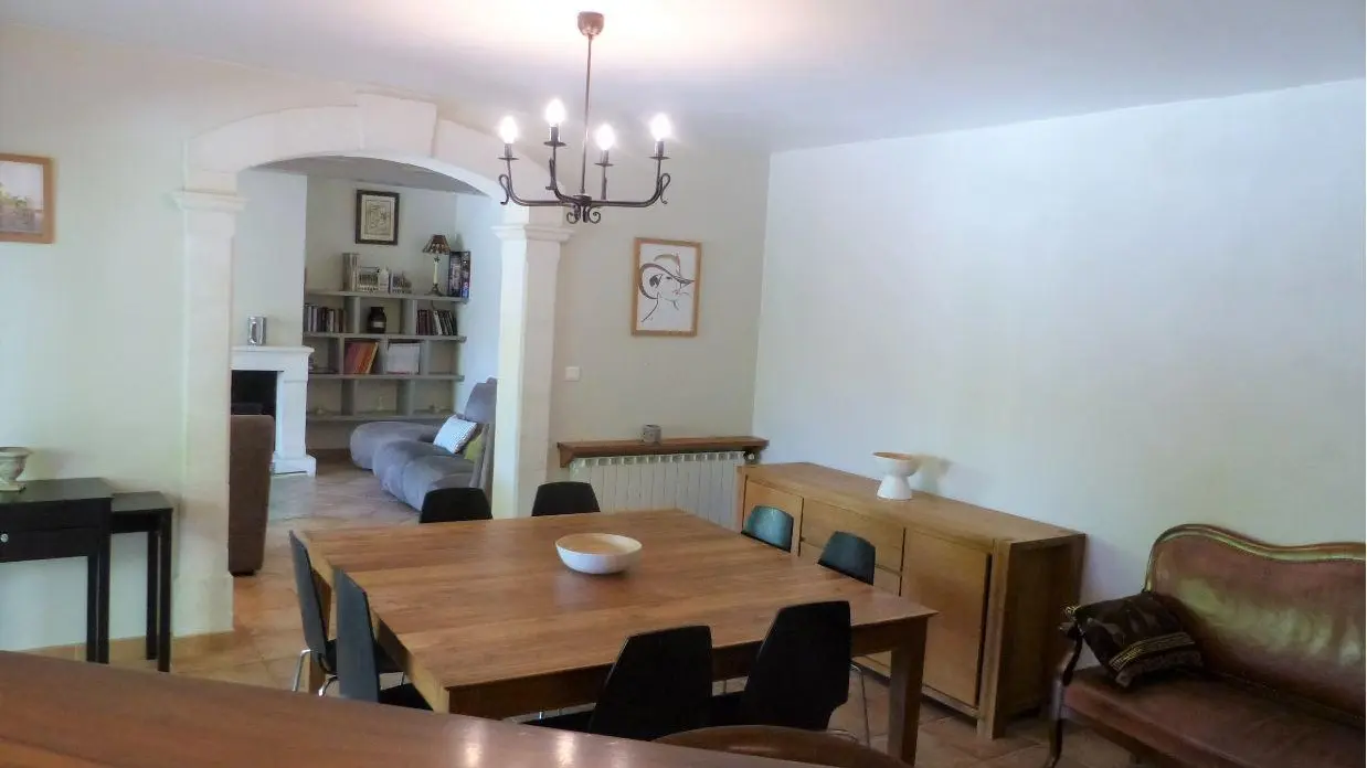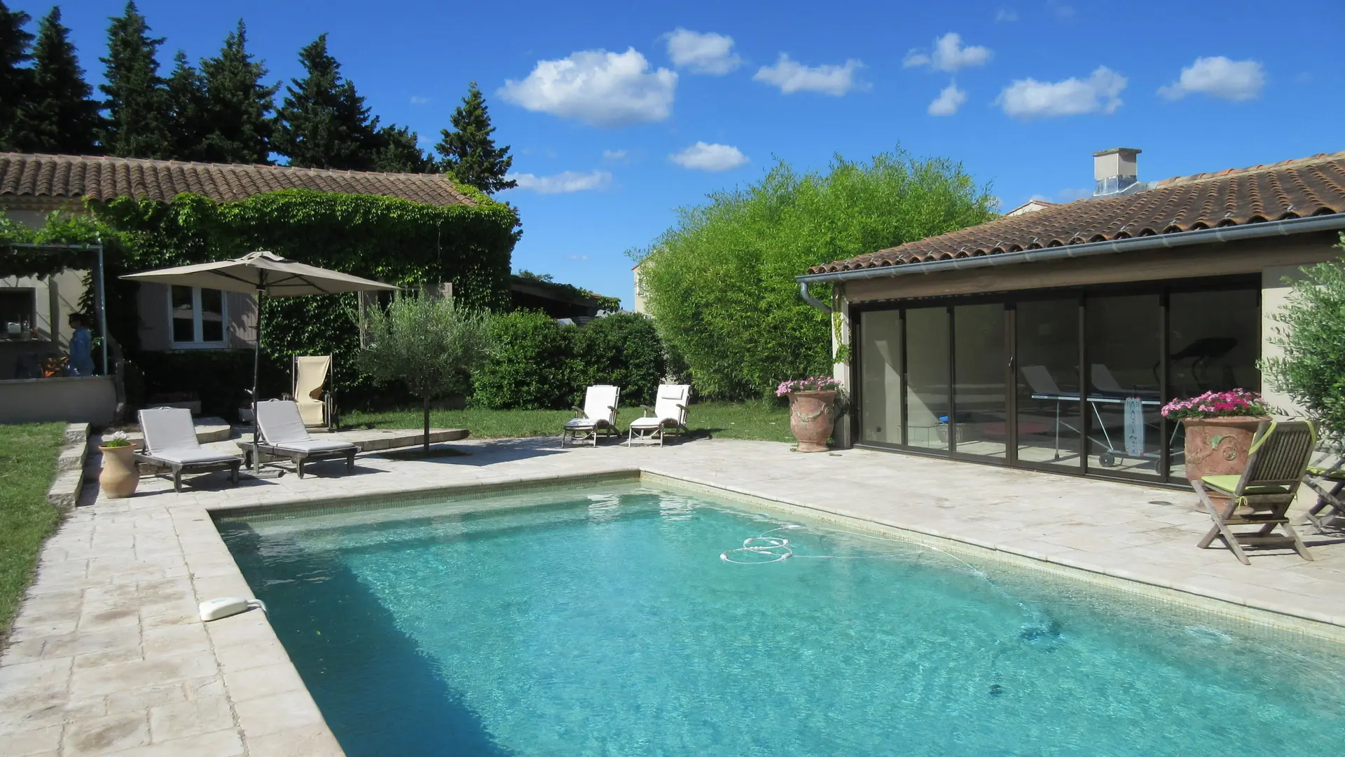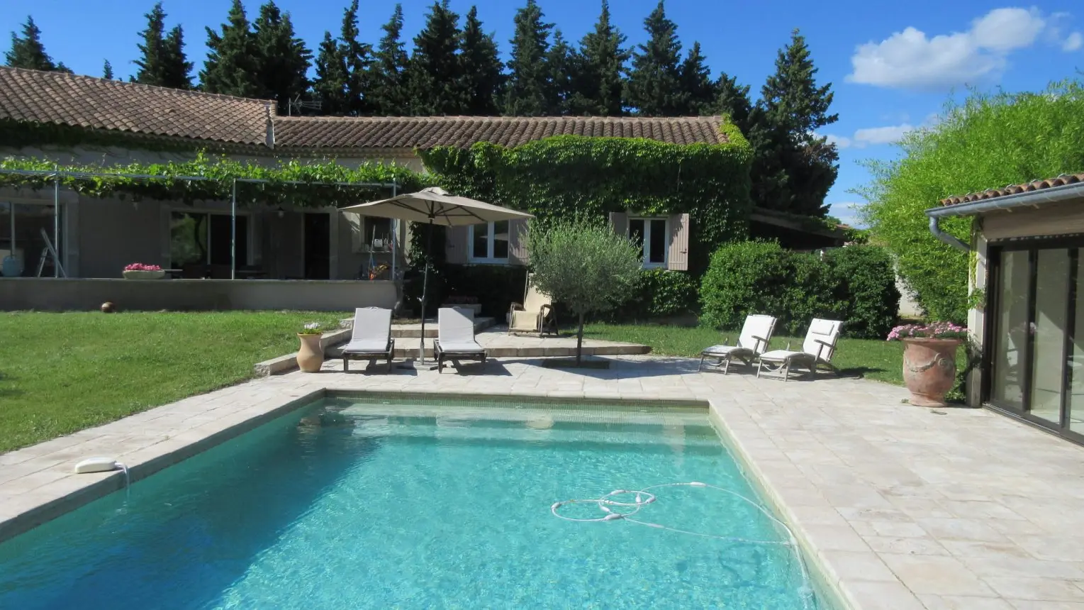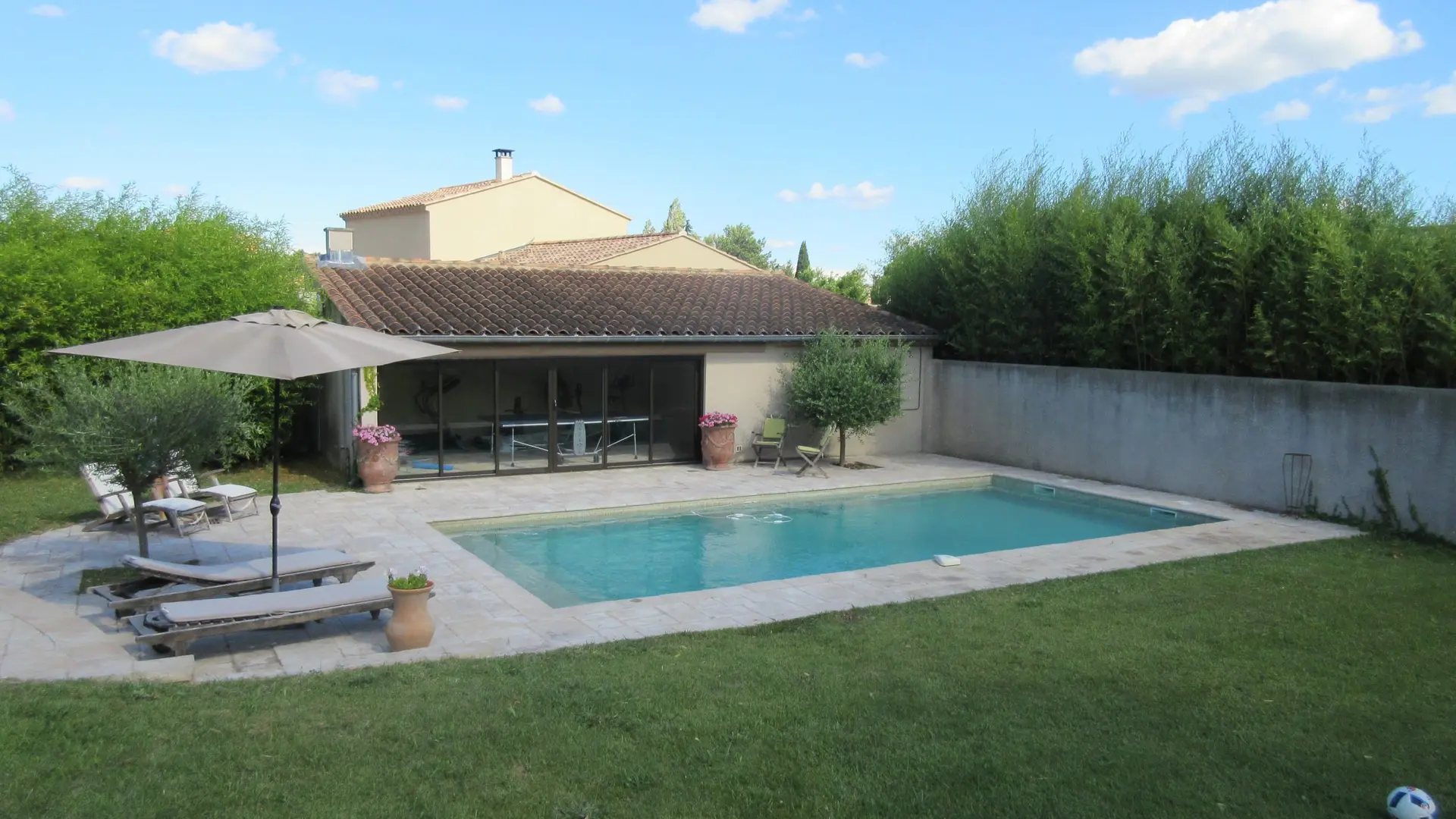 In the village of Maillane, between Alpilles and Avignon, beautiful independent house on fully enclosed land, with secure swimming pool (10x5 - depth 1.40 m - open from April 1 to October 31) heated from June to the end of September (pool towels provided) . Beautiful green spaces, a shaded terrace, a gym with fitness equipment and table tennis: an ideal place for holidays with family or friends! On the ground floor: air-conditioned communicating living room between the living room (flat screen TV, library, sofas and armchairs) and the dining room. American kitchen with dishwasher, oven, microwave, hob, fridge / freezer. Laundry room with washing machine / dryer. 4 bedrooms including 2 with double bed (160x200) and 2 with 2 single beds (90x200). Nice bathroom with shower, corner bath and toilet. Second bathroom with wc. Independent toilet with washbasin. Central heating (included) - air conditioning in the living room - linen kit (aps and towel) for hire (€ 15 per person) - end of stay cleaning (€ 80) - cot and high chair provided - barbecue