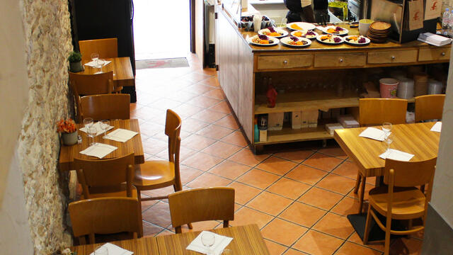 The restaurant has a few tables on the terrace, which are very popular during the summer months. Restaurant bassari meat.