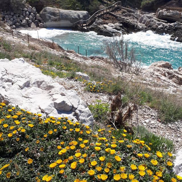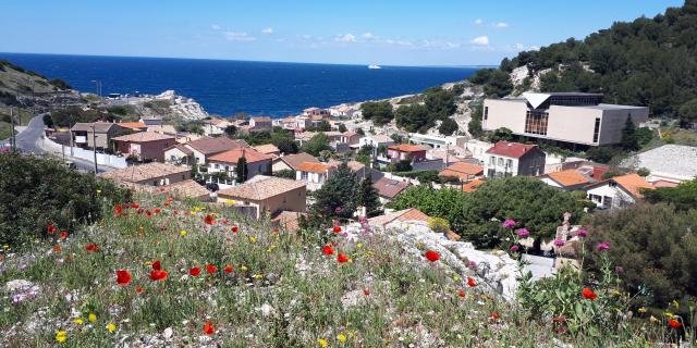 Bienvenido al corazón terrestre del parque nacional. El Parc National des Calanques es el primer parque nacional periurbano de Europa, que abarca zonas terrestres y marinas. Al recorrer el litoral marsellés, preferiblemente en autobús o en un medio de transporte blando, se encontrará con una señal de tráfico de interés cultural y turístico que debería llamarle la atención. Se encuentra al pie de un antiguo muro antitanque, vestigio de la Segunda Guerra Mundial, y está dominado por una pequeña montaña redondeada, el Mont-Rose, que se eleva hasta los 84 metros e indica la entrada a esta zona magnífica, frágil y muy codiciada.