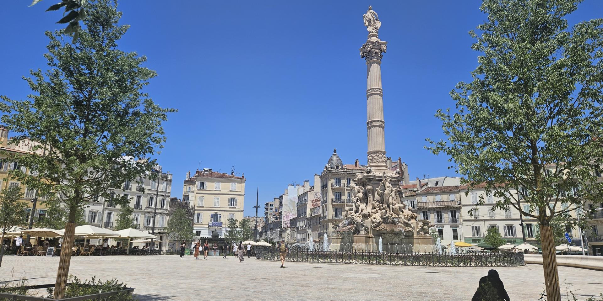 El Marqués Henri-César de Castellane-Majastre, propietario del terreno, lo cedió gratuitamente a la ciudad en 1774, dando así su nombre a la plaza. Al mismo tiempo, se ofreció a financiar las obras de la plaza. Así, en 1798, se instaló una primera fuente y un lavadero. En 1811, para celebrar el nacimiento del hijo del emperador Napoleón I, se añadió a la plaza un obelisco que permaneció en su lugar hasta 1911, cuando fue trasladado al barrio de Mazargues donde, por cierto, aún puede contemplarse.
